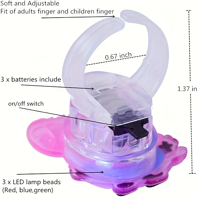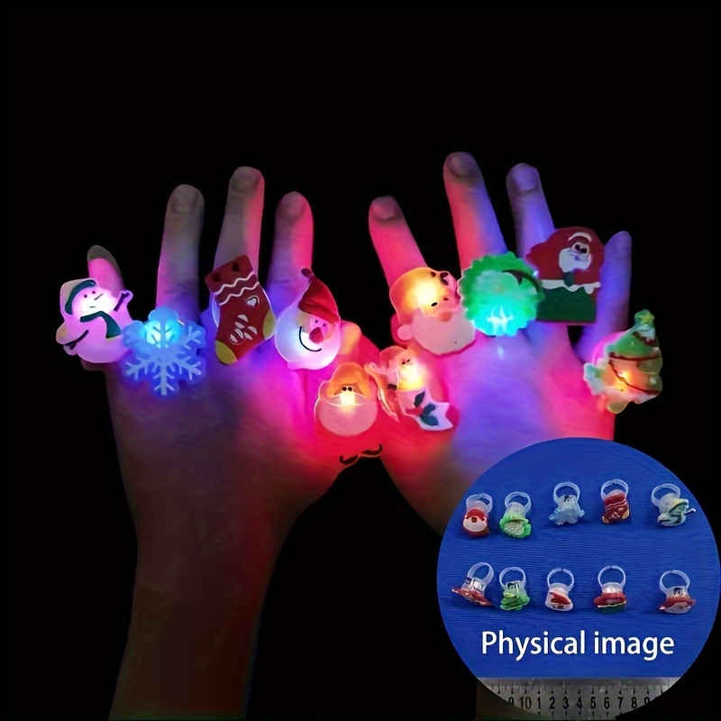 50 Pieces 3D Ring Toys, Christmas Party Favors Glitter Finger Rings, Kids Rings Glow In The Dark Party Supplies, -4