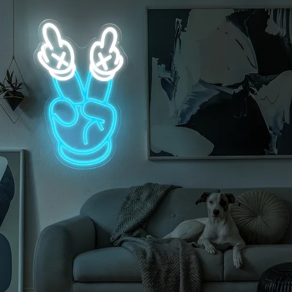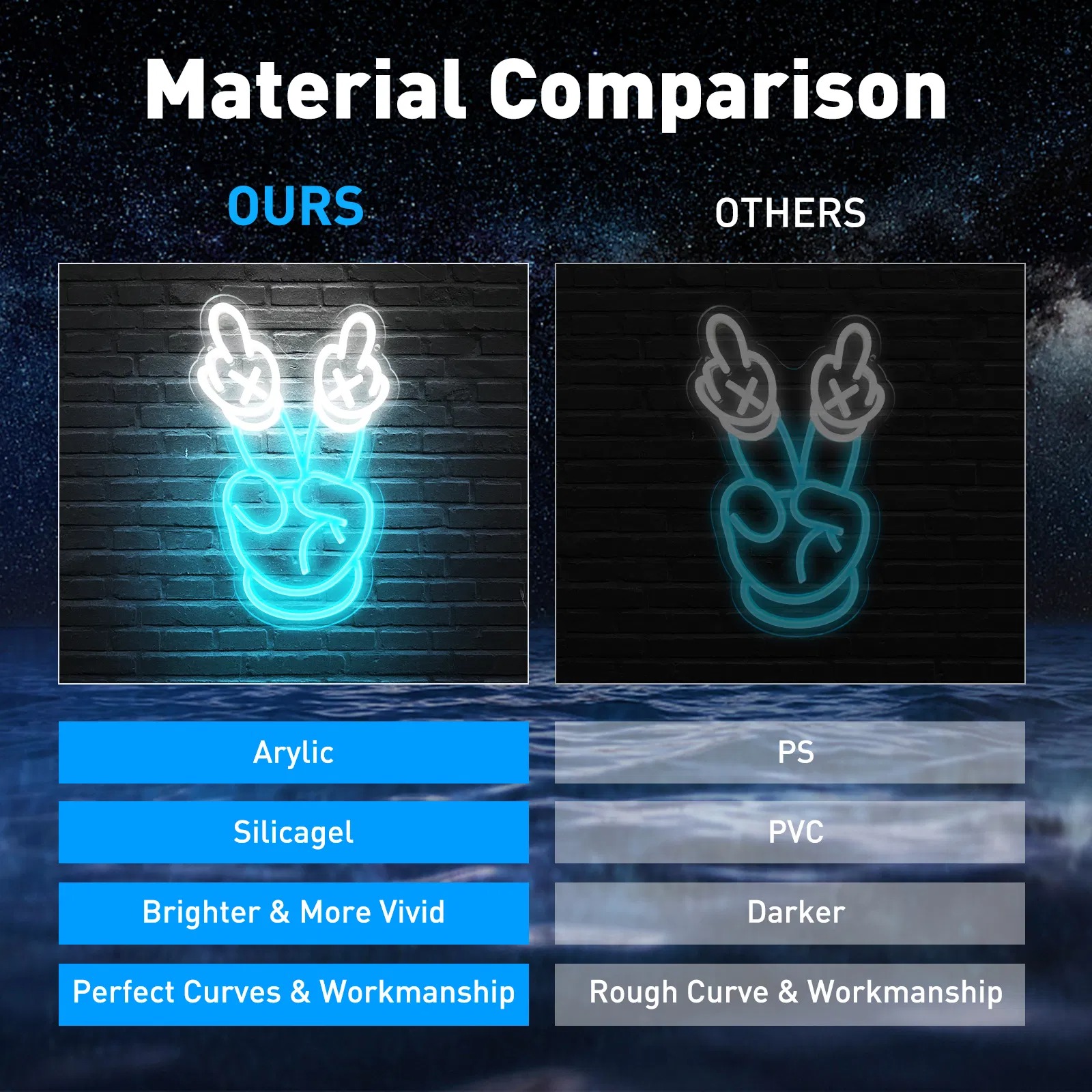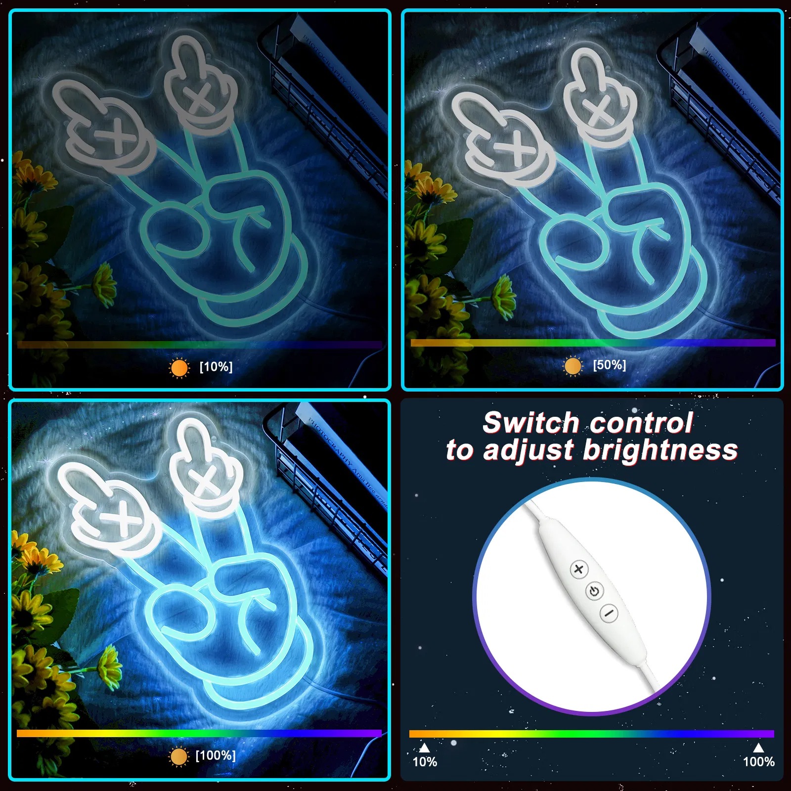 Gesture led light sign:Cartoon fist gesture design with unique design,the neon signs are perfect for your wall decor,can make your room more charming.Our neon sign must the beautiful and unique gift.The "Victory Gesture" neon light can be used for game room, bedroom, bar, dormitory, shop, living room or game zone decoration.
