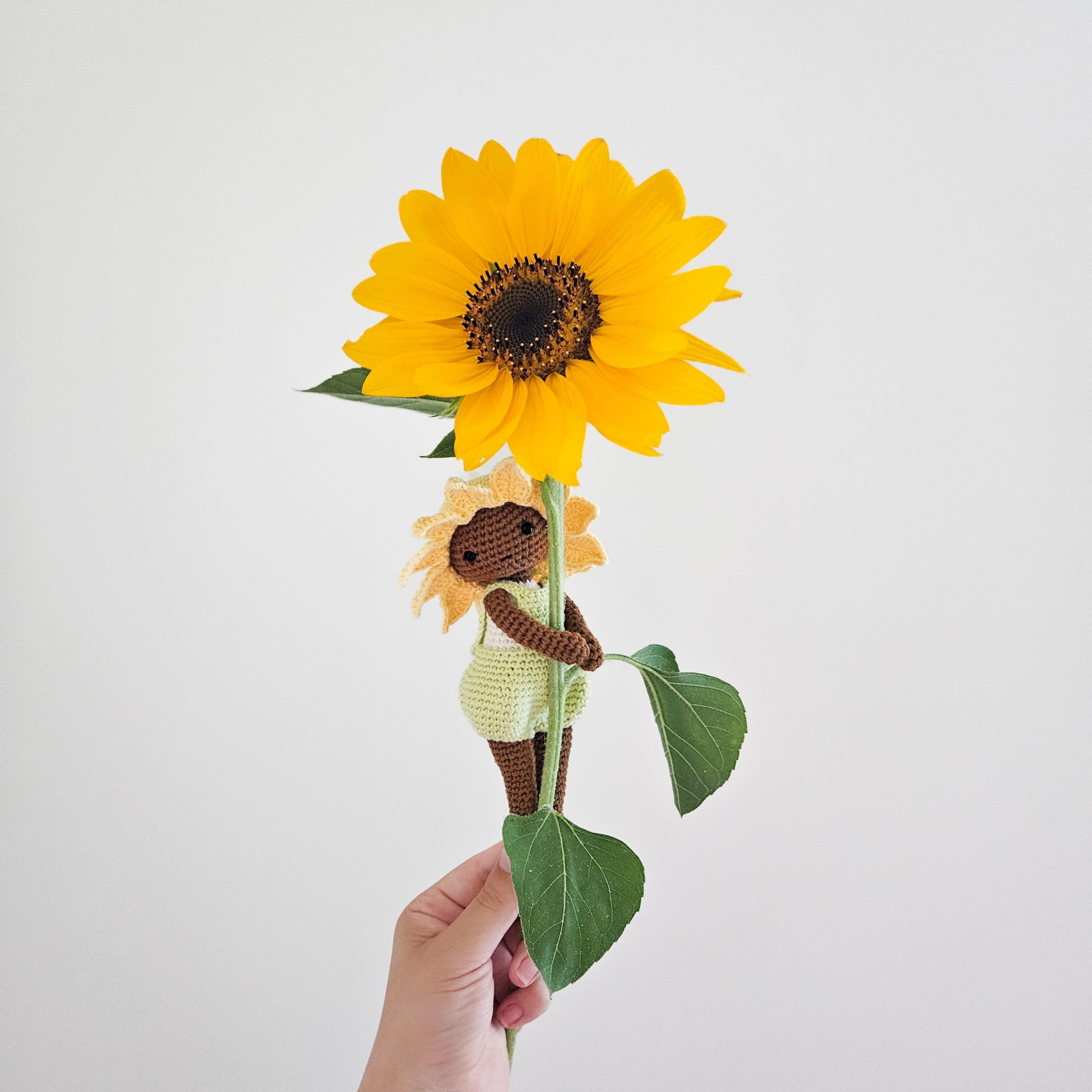 Hidden in an old cottage is a charming flower sprite with a large flower hat and poofy overalls, tending to a vibrant garden. Unseen by the cottage's inhabitants, she nurtures the flowers with love and encouragement, creating a magical haven of colors and scents. This intermediate-level digital crochet pattern includes 13 pages with mini tutorials on techniques like invisible decrease and double crochet, along with numerous photos for guidance. The pattern is in US terms (English and French) and requires a 2.00mm crochet hook, cotton fingering yarn (up to 5 colors), stuffing, black safety eyes (5mm), and other basic supplies. Finished size is approximately 17 cm (6.7 inches), but can be adjusted with different yarn. © February 2022. For personal use only; products made can be sold if credited to the author.