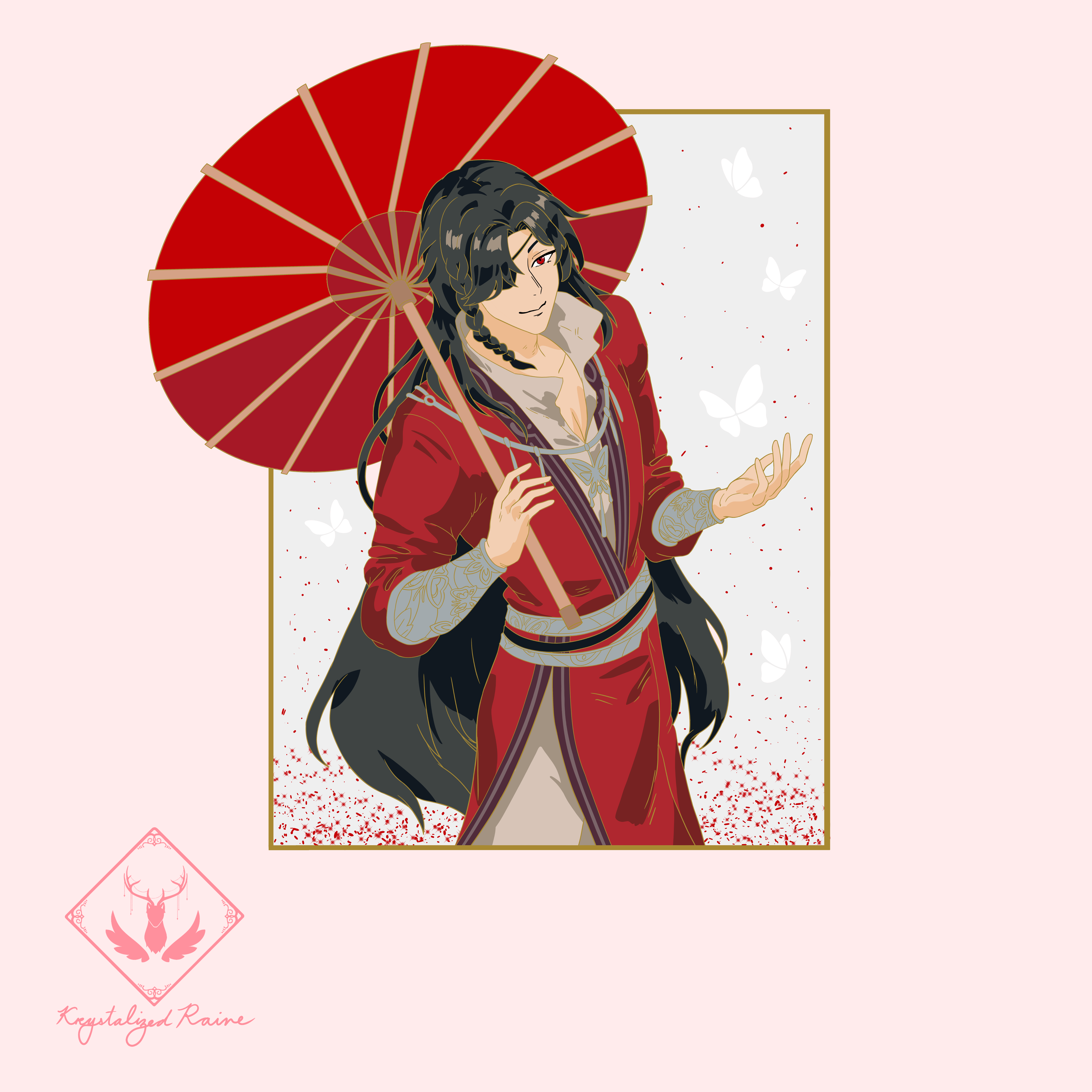 Hua Cheng Quicksand Pin ⟡ 3.75 inches ⟡ Hard enamel ⟡ Red iridescent and glow butterfly quicksand ⟡ Glow in the dark Pad Print ⟡ Pearl no swirl ⟡ Translucent ⟡ A/B grade I will be picking the best ones from the batch for preorders.