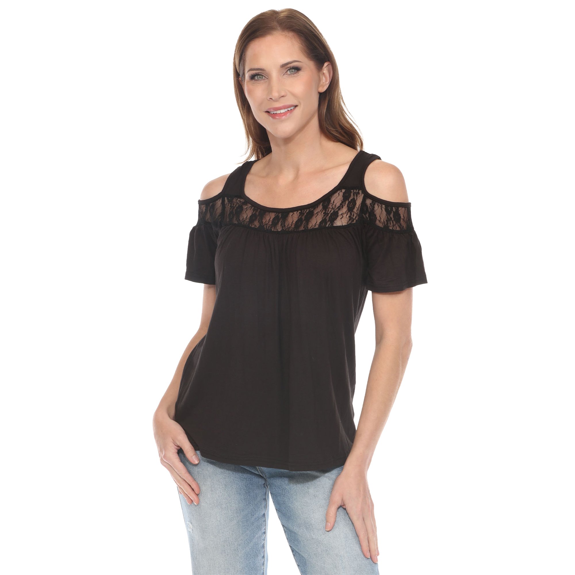 White Mark Cold Shoulder Lace Trim Knit Top, S-4X