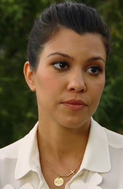 Kourtney Kardashian has been seen everywhere wearing her personalized mommy jewelry. Here she is seen in a gold disc necklace with a sideways cross. Perfect Mommy Necklace!