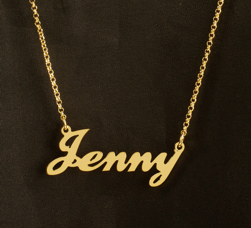 This nameplate features a beautiful script font and is uniquely made just for you. The ever popular nameplate necklace resurfaced on Carrie Bradshaw (Sarah Jessica Parker), as seen on Sex In The City. This great nameplate necklace measures approximately 1.5" long x 1/2" high.