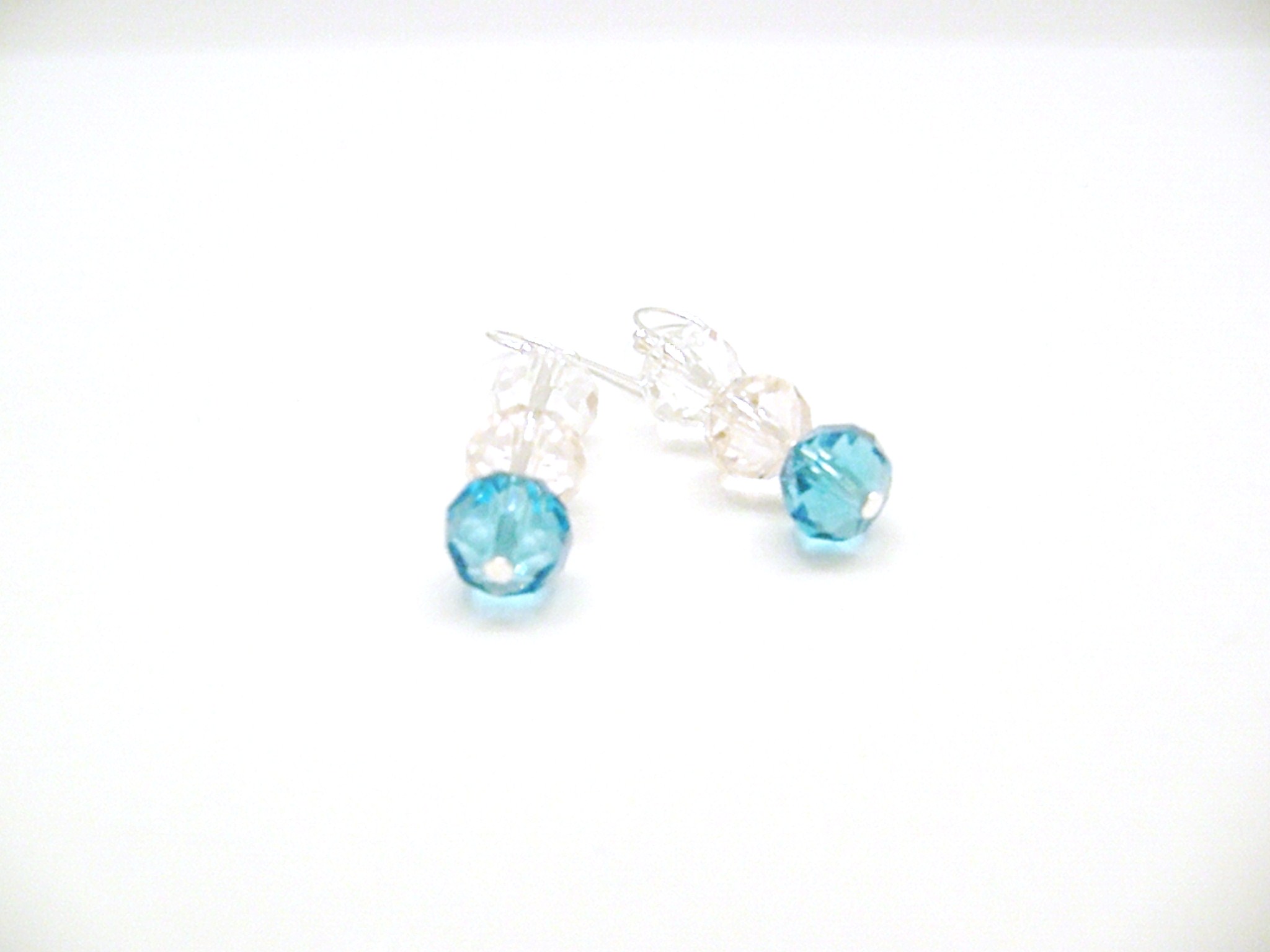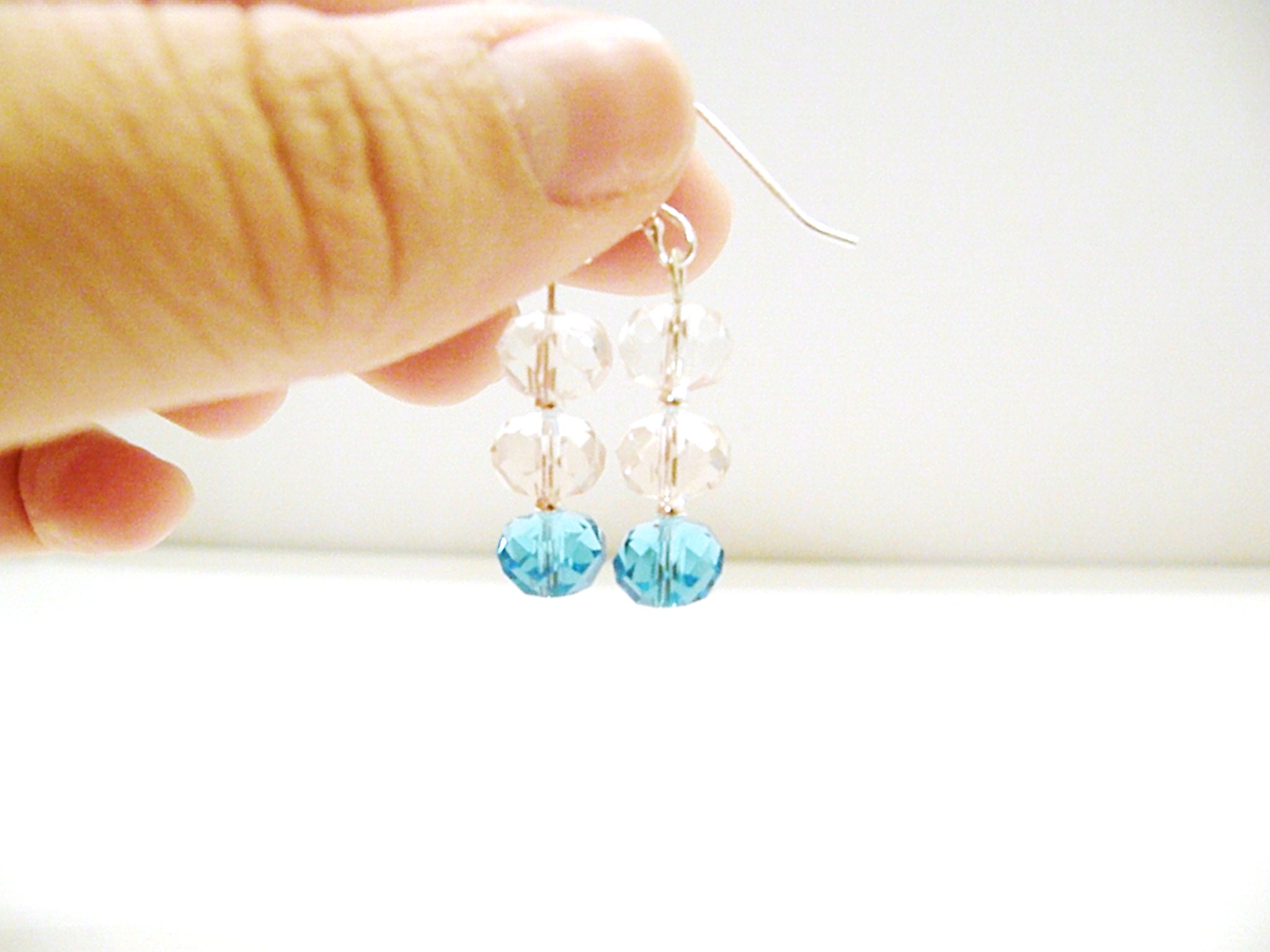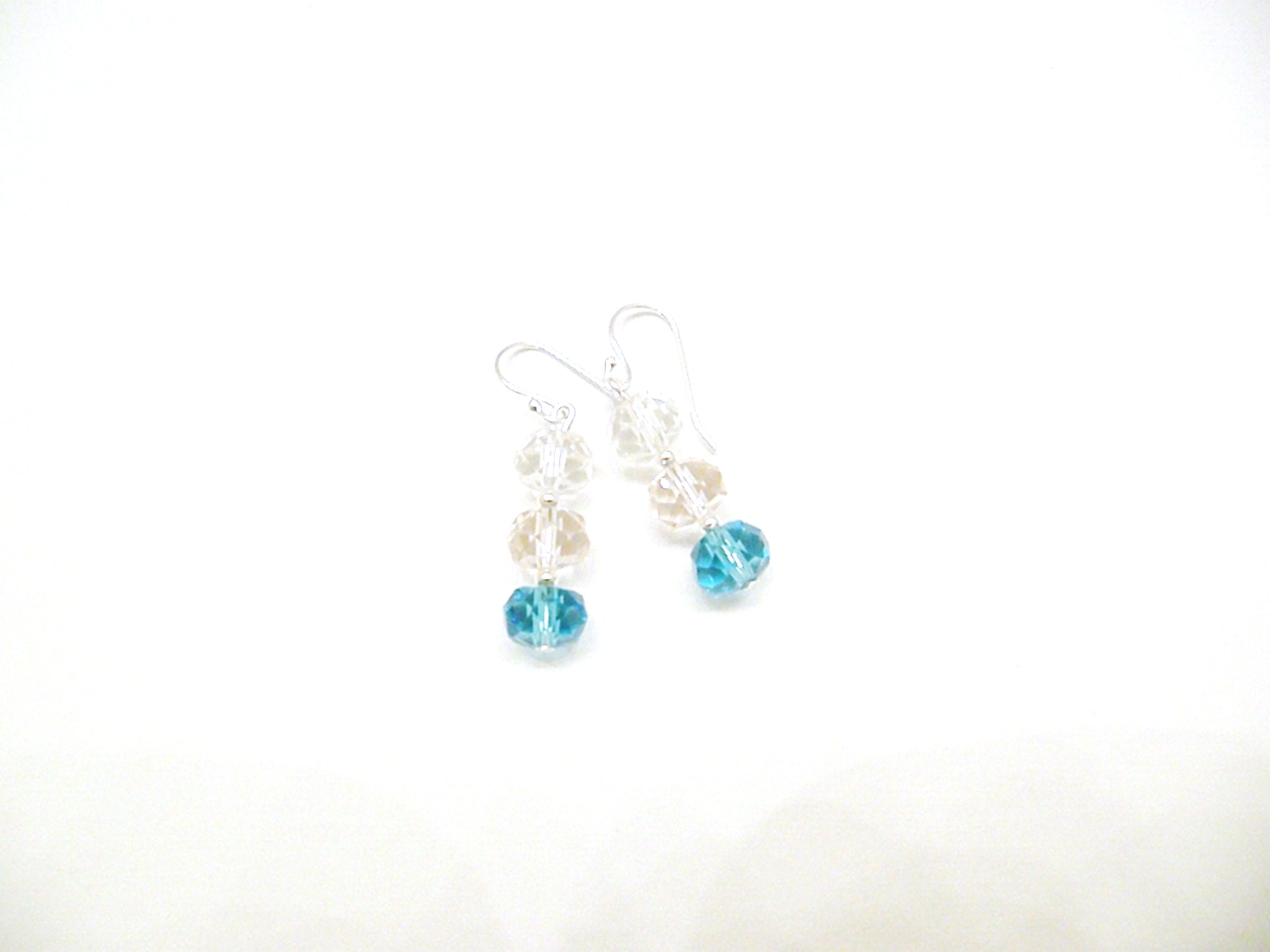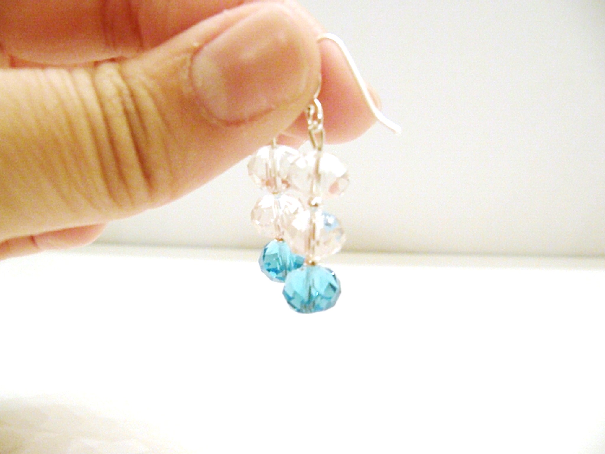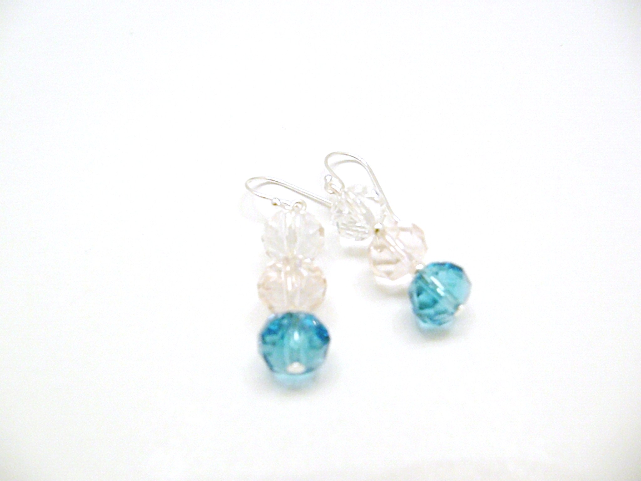 Lovely drop earrings made using light pink glass beads, clear glass beads, light blue glass beads, sterling silver small beads, and sterling silver earring hooks.
