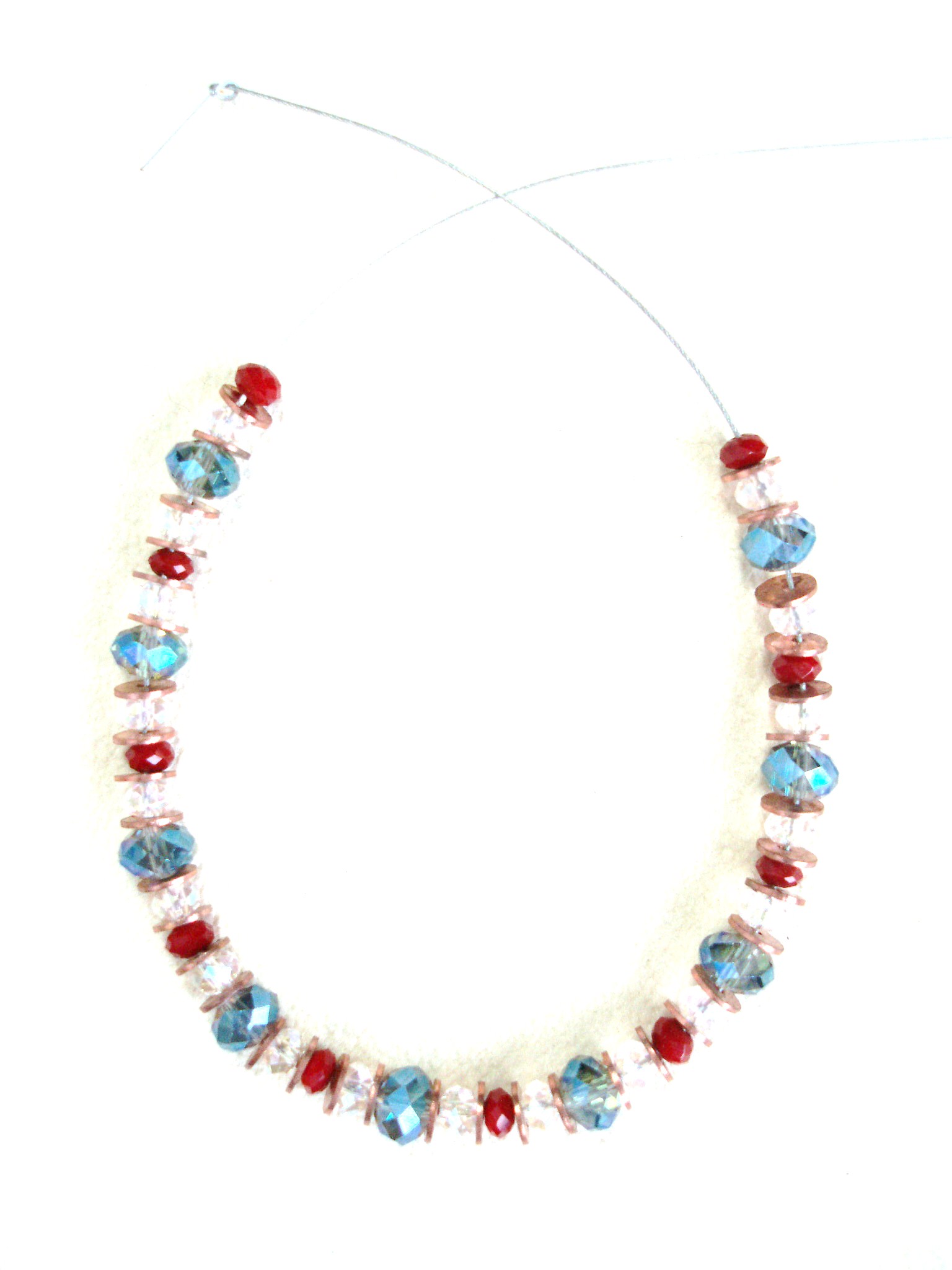 This child size bracelet has alternating crystals in red, white, and blue. A great way to show your patriotism year round! * Made with crystal and copper beads; hook and eye clasp; 6-3/4" length.