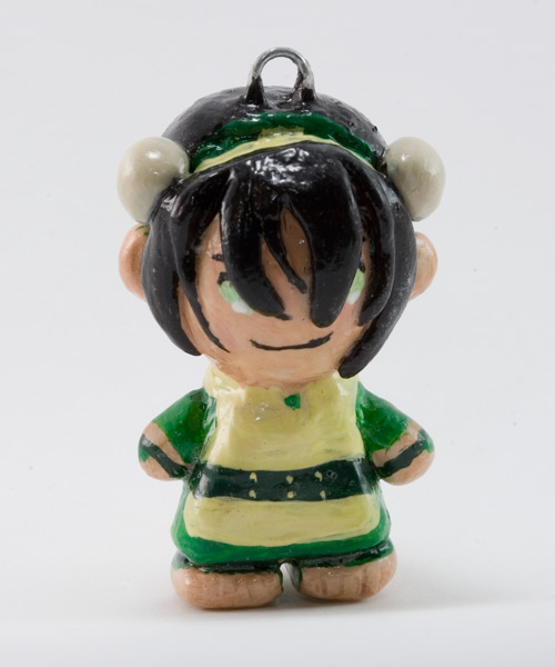 A master earthbender and heiress of a noble Earth Kingdom family, Toph Bei Fong is cocky and proud, and for good reason! Standing tall on your desk or as a cute zipper pull, Toph measures about 1 3/8" (3.5cm) tall and comes with a keyring and short chain. Each charm is made from wire and Sculpey and has been painted and triple-glazed with a protective glossy coating in order to prevent chipping and breakage, but care is still recommended as polymer clay is not indestructable!