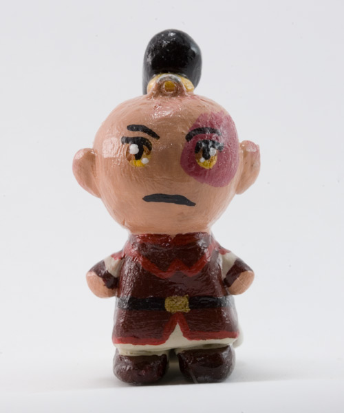 Outcast and shamed, Prince Zuko of the Fire Nation became obsessed with capturing the Avatar and restoring his honor in his father's eyes. His fanatic devotion to his task made him the number one enemy of Team Avatar in Season One. Whether standing determinedly on your computer monitor or hanging from your cellphone, Zuko measures about 1 5/8" (4.5cm) tall and comes with a keyring and short chain. Each charm is made from wire and Sculpey and has been painted and triple-glazed with a protective glossy coating in order to prevent chipping and breakage, but care is still recommended as polymer clay is not indestructable!