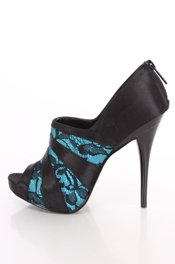 Teal Lace Two Tone Peep Toe Heels Satin-1