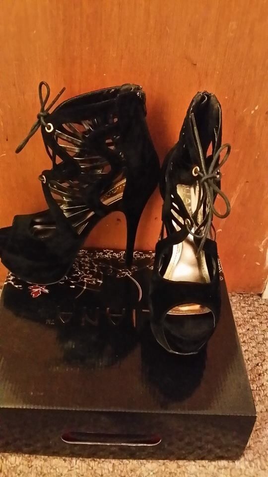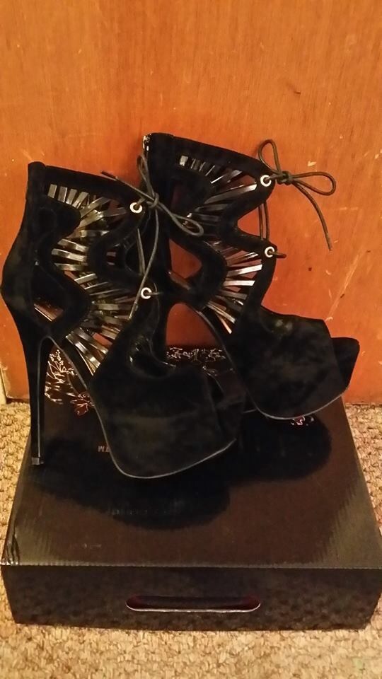 Black Lace Up Platform Sandals With Zipper Back Also Available in Purple(7 1/2 Only) Pairs Perfectly with our Camille Dress