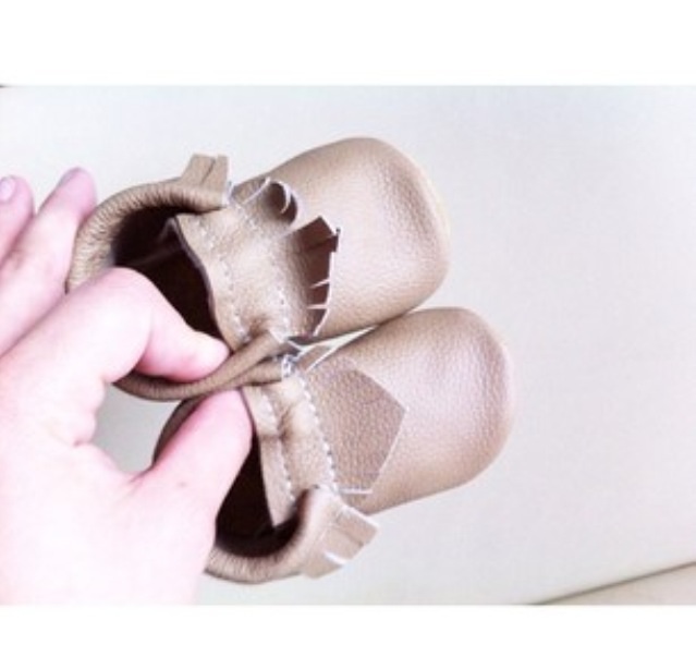 My Beautiful Little Moccs are made from 100% Genuine leather,. Our moccs are easy to put on, easy to take off but most important; they will stay in your babes foot. Our moccs have an elastic around the ankle (at opening). Our moccs can be made with soft soles ( a sole made from leather ) or with walkers sole (this is made suede / tan colored , very durable ).