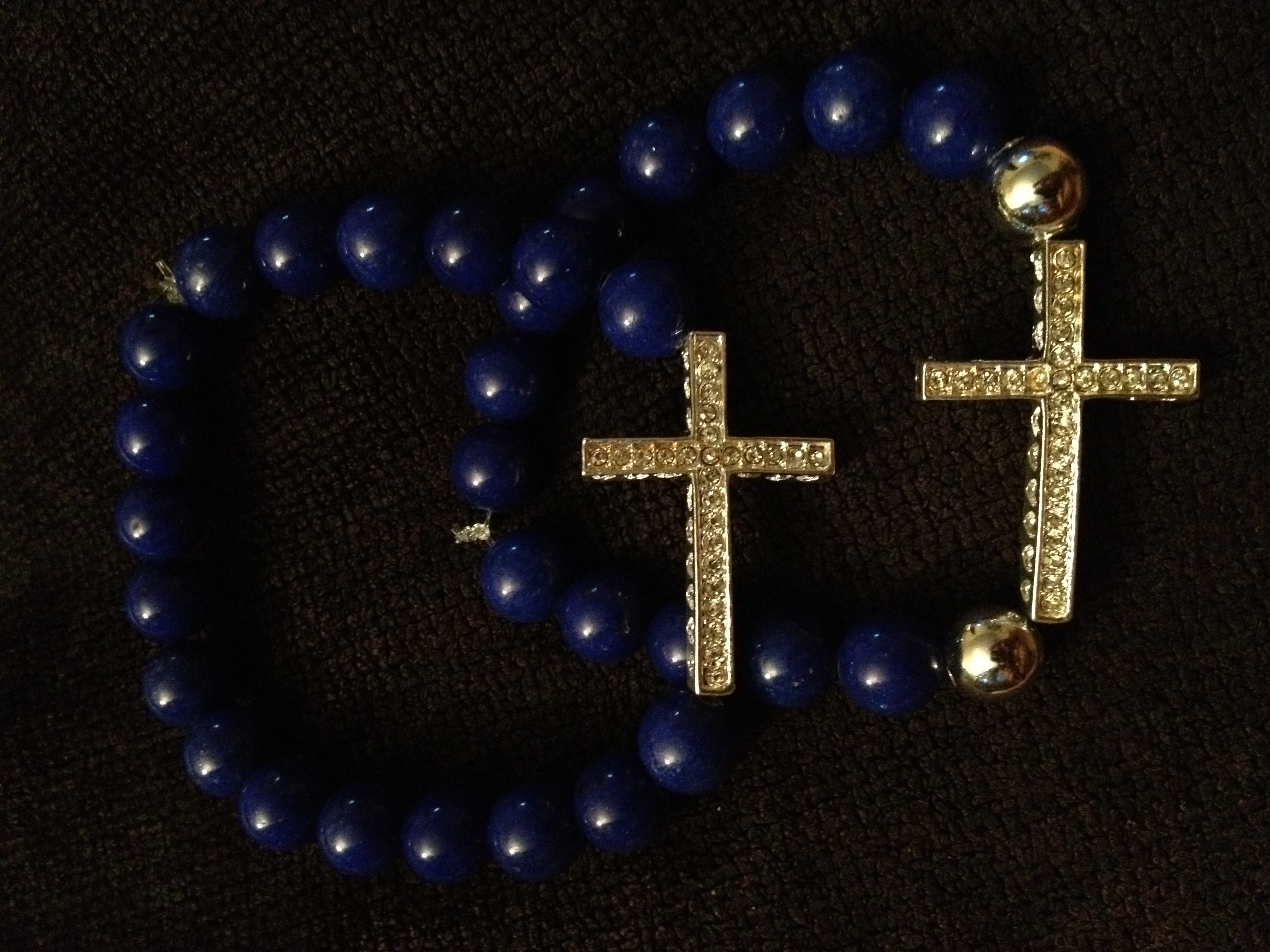 all blue beads with silver cross (picture is of a HIS and HER set, the HER's has the silver beads on the ends. available upon request)