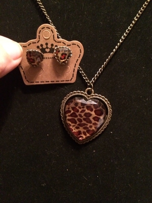 Where this adorable heart leopard print pendent and earring as a fun and stylish way to dress up your work clothes. A little flare to those boring work office clothes.