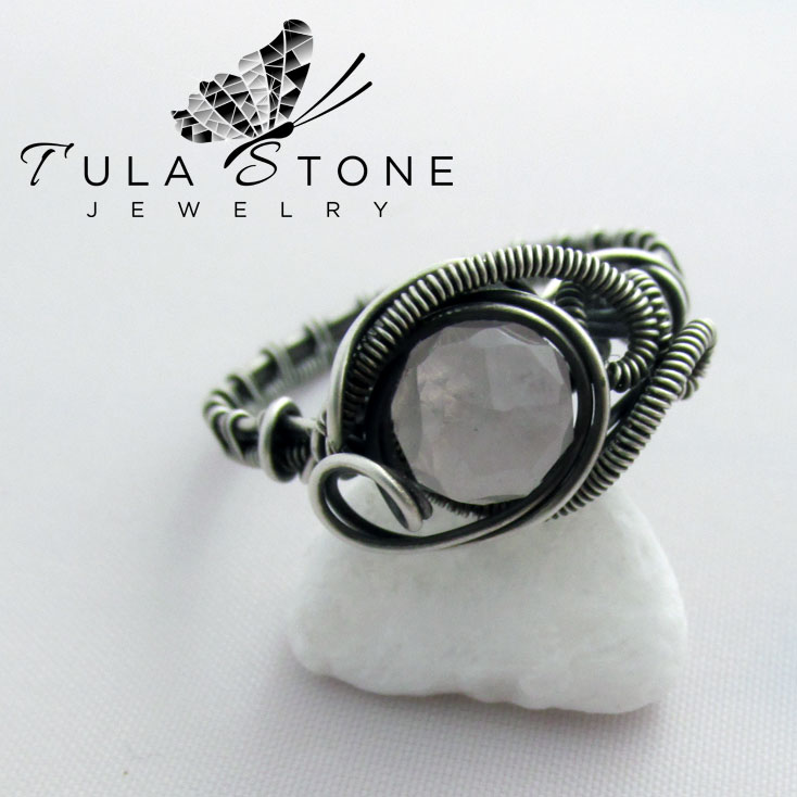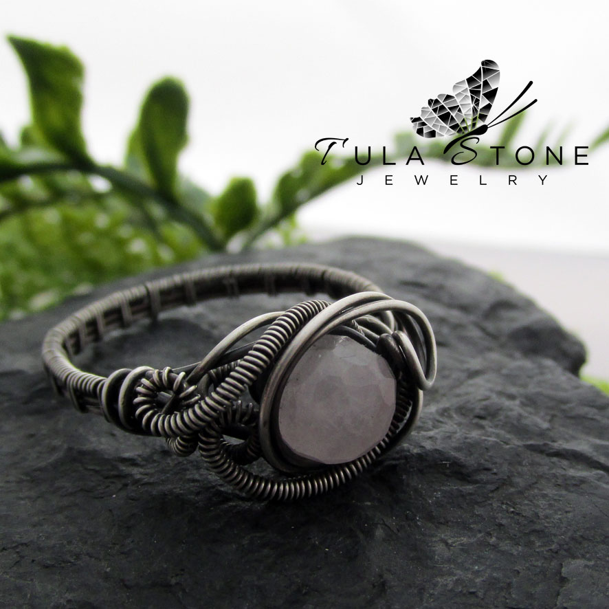 Sterling and Rose Quartz Wire Wrapped Ring-4