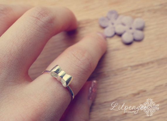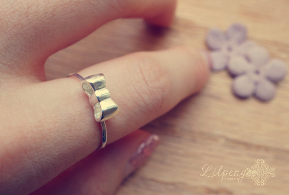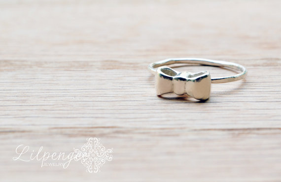 A sweet sterling silver bow dainty stacking ring .This adorable ring is as cute as can be. Looks great worn alone or stacked with other rings!