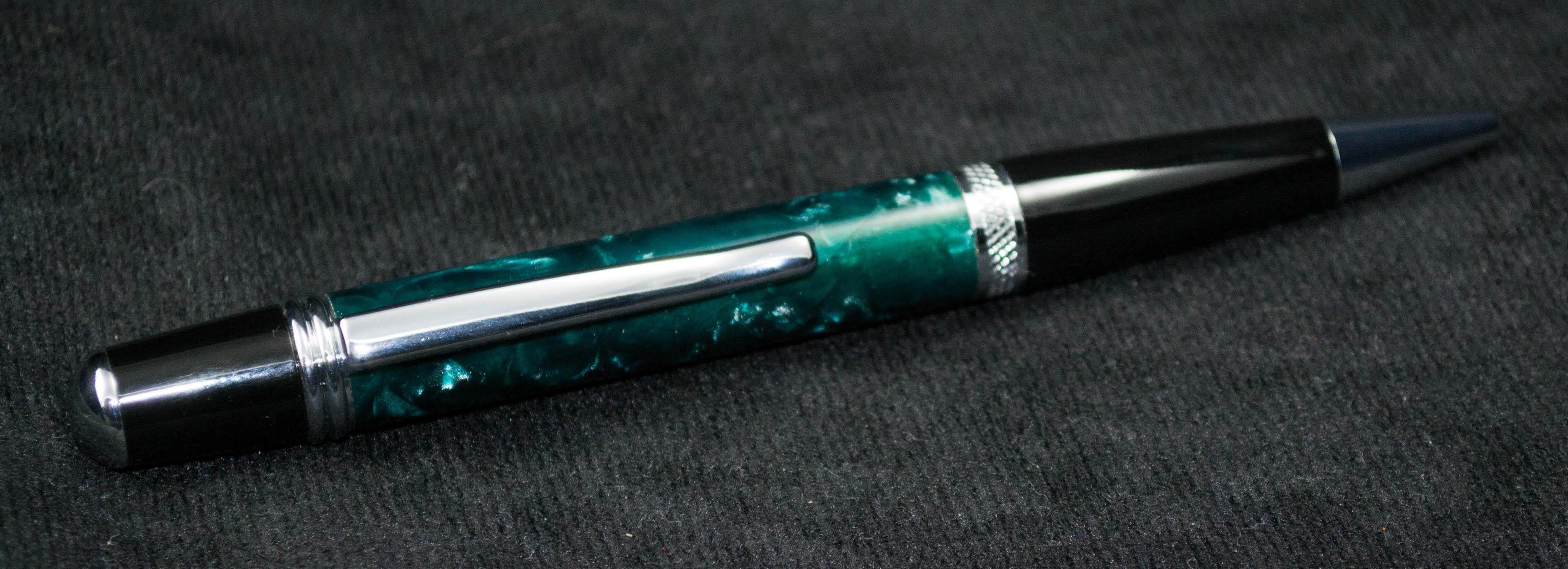If you are looking for a classic pen that has smooth lines and the distinct feel of a quality writing instrument in your hand, you have found it. It uses a Parker style refill. Don't forget to add a pen case, you can view it under the accessories. Green Swirl Acrylic