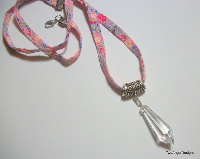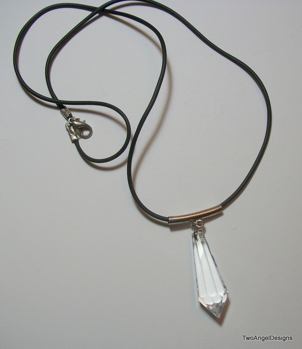 New Age or not, this is a stylish, yet subtle addition to your look... available on leather or antique silk kimono ribbon, measures 24 inches long. Can be made shorter or longer as desired. The crystal is 2 inches long.