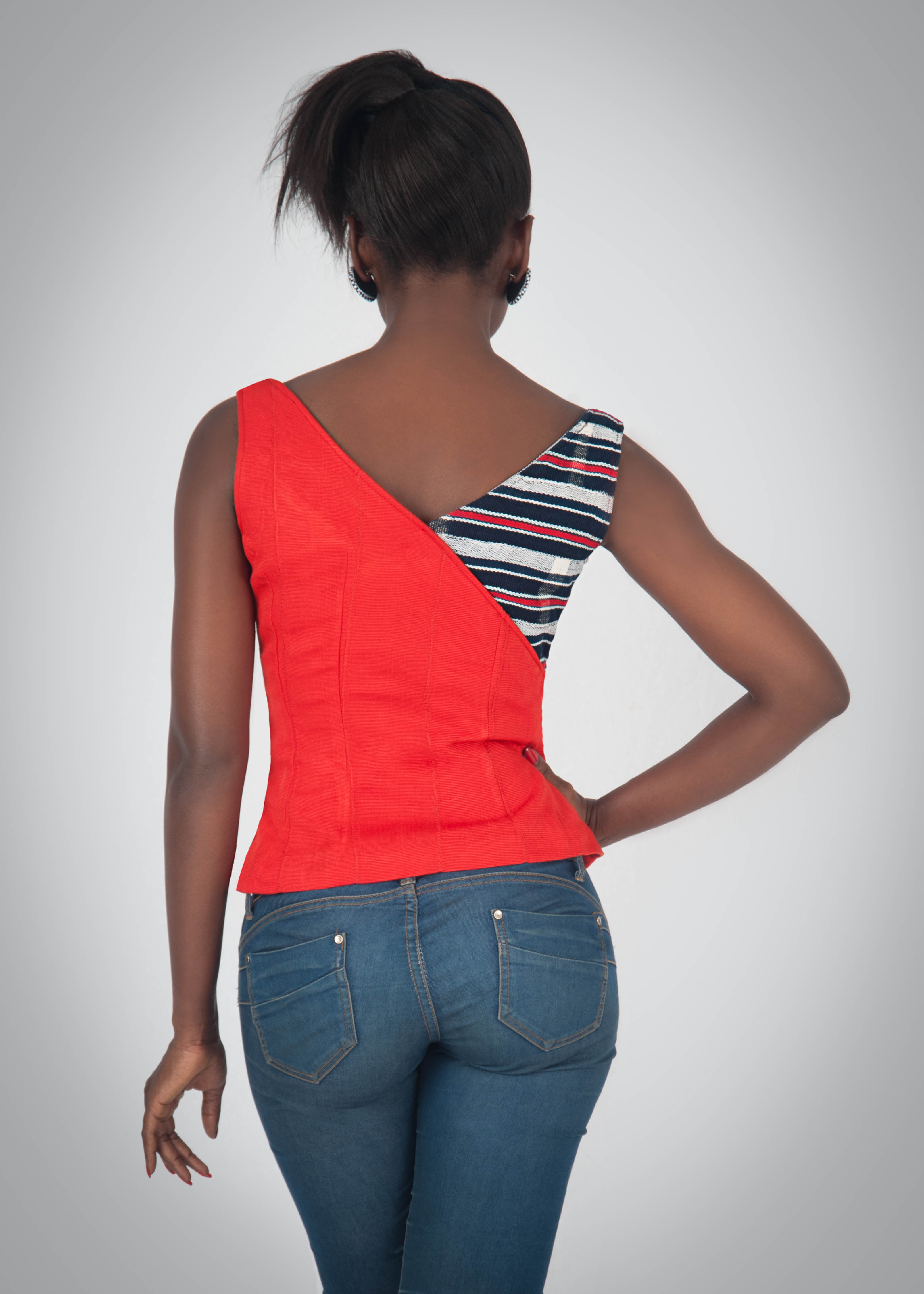 Two fabric vee handwoven cotton top with back stripe detail-1