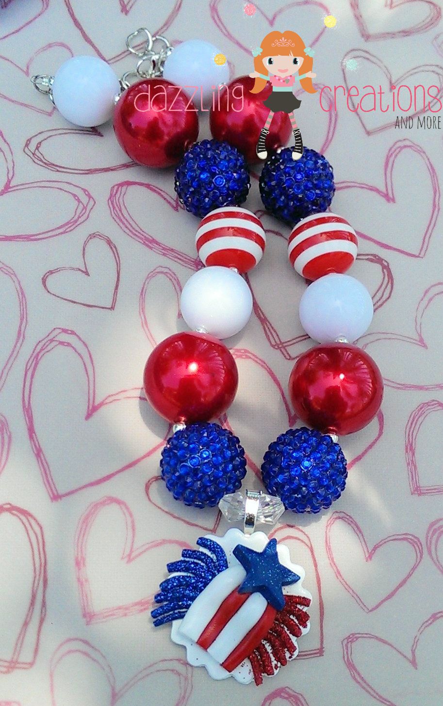 'Shooting Star' 4th of July Patriotic Chunky Necklace and Hair Clip