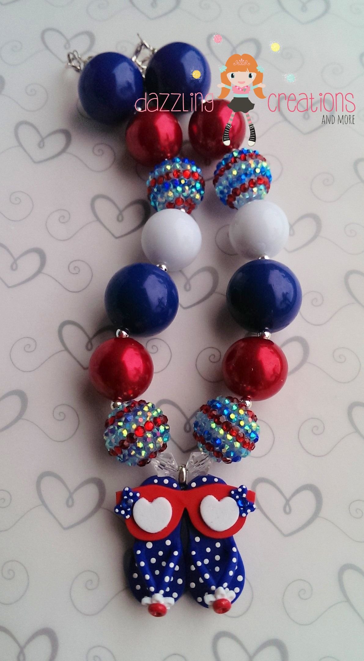 'Flip Flops' 4th of July Patriotic Chunky Necklace and Hair Clip