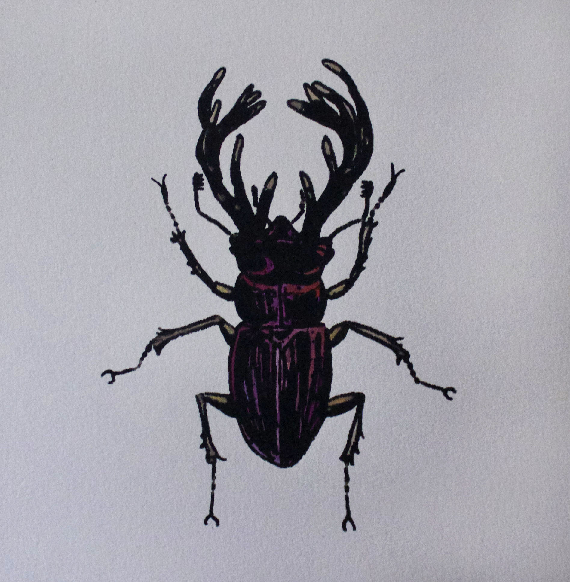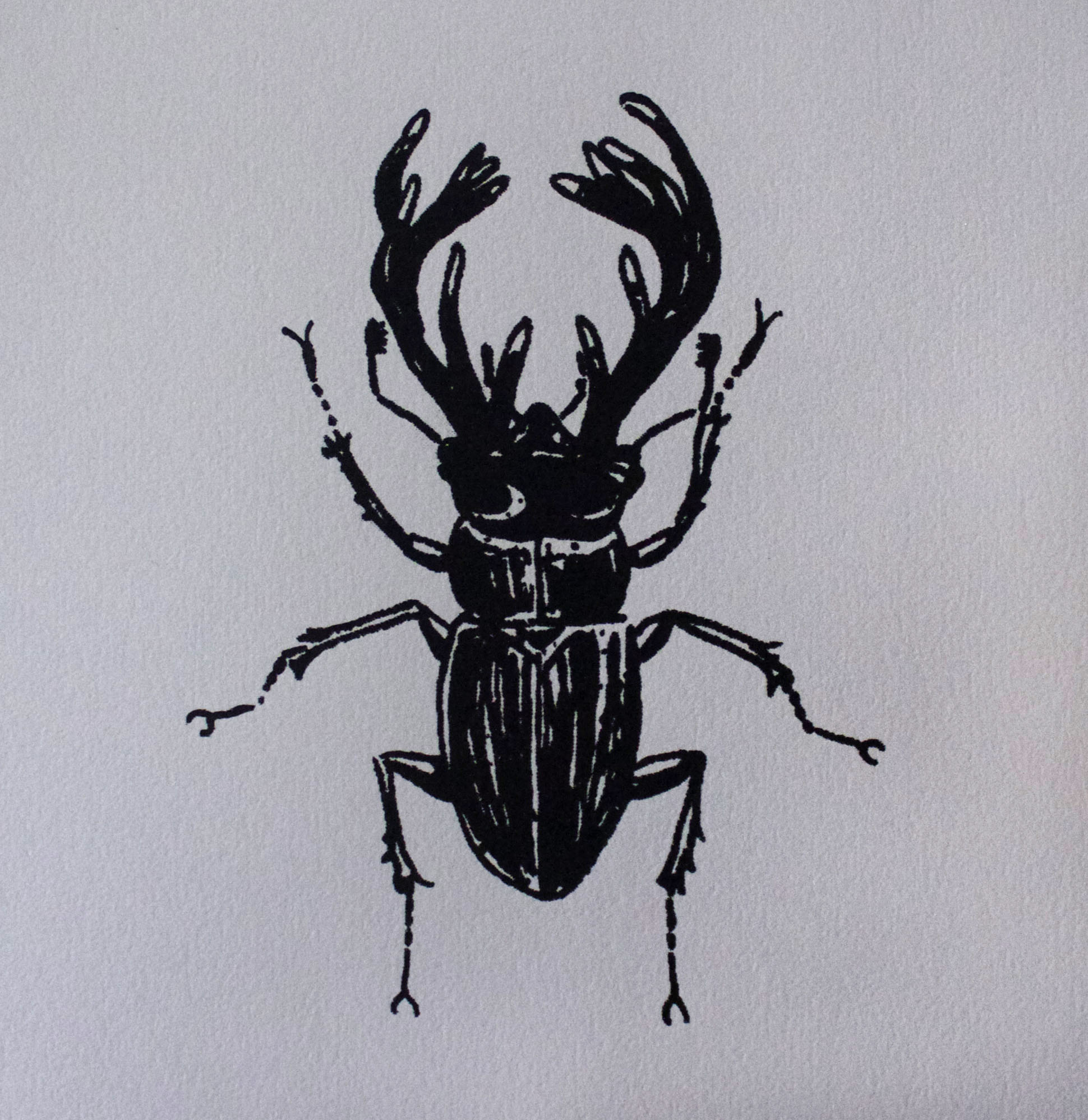 One color screenprint on light gray Canson printmaking paper. Dimensions: 7in x 7in. "Lucanidae I" Hand-painted "Lucanidae II" Upainted limited edition size: four Available for custom hand-painting upon request
