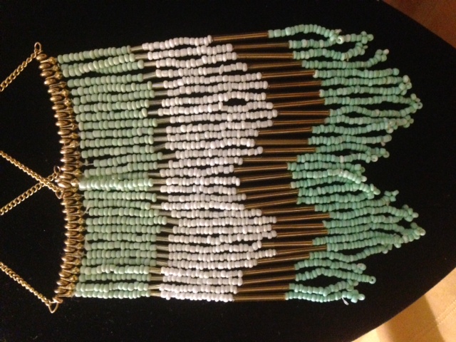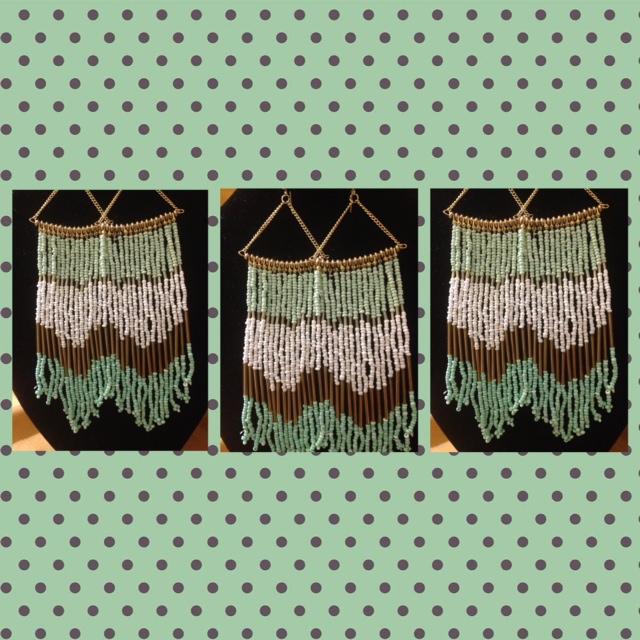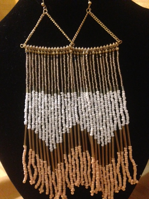 Long string earrings made with seed beads. Comes in either mint or light pink.