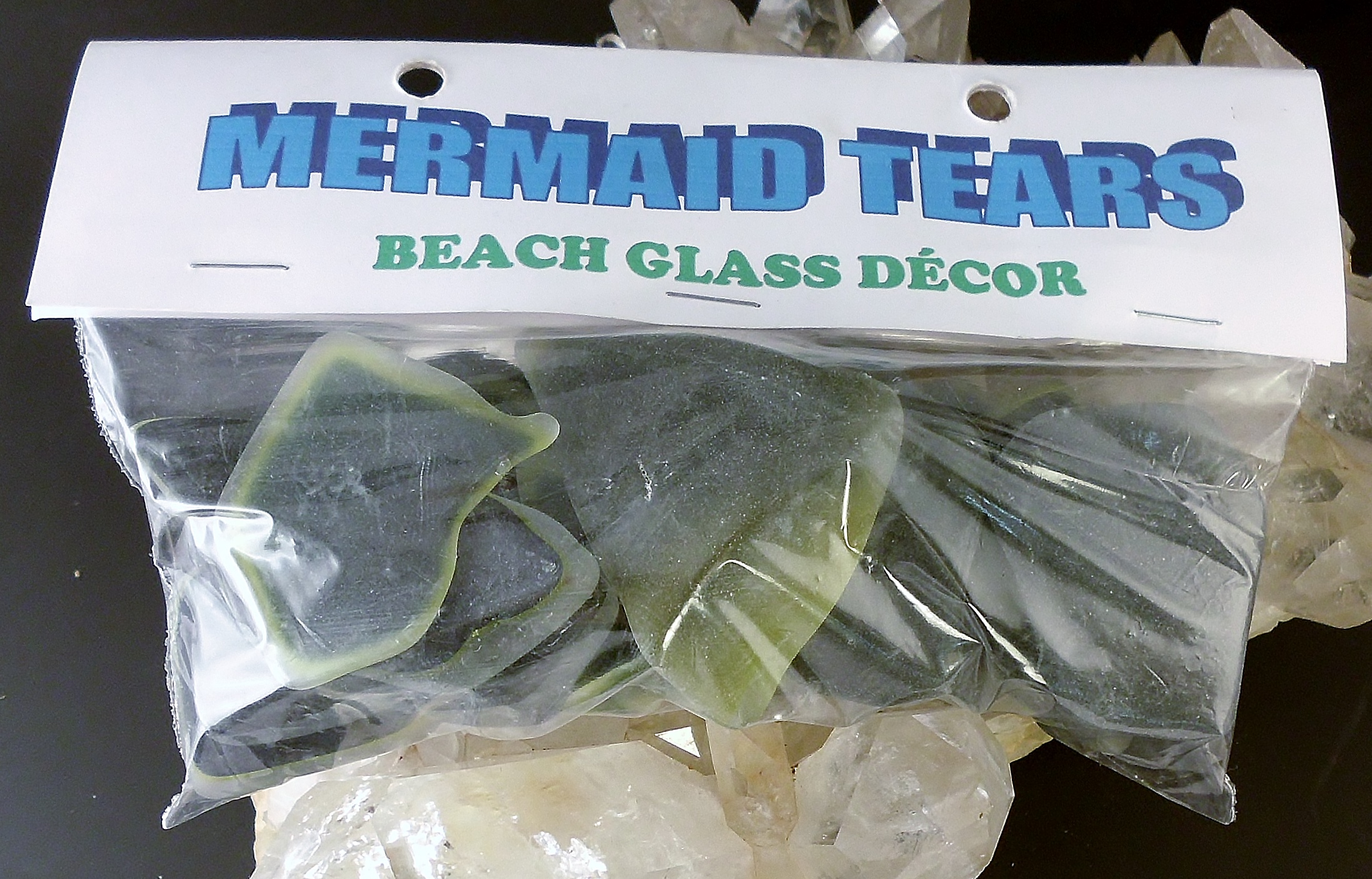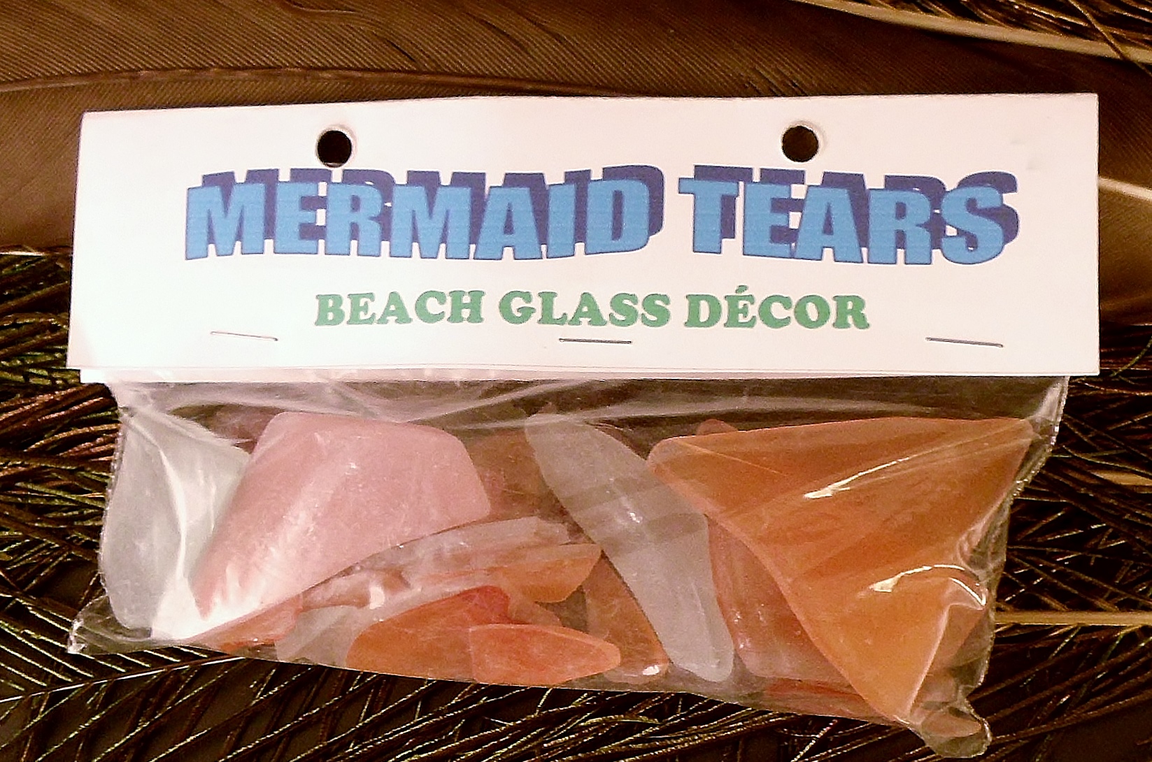 Mermaid Tears occur when a mermaid cries, the moment her tears touch the saltwater they transform to glass! The tear then floats to the bottom of the ocean to settle among the sand and shells. Over time the currents of the ocean push it through the sand, rounding and polishing it as it tumbles. It is eventually deposited by the water on beaches around the world for humans to find and marvel over!
