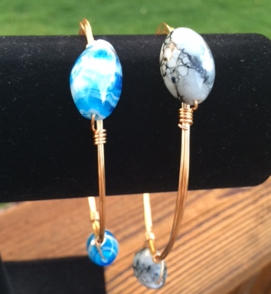 Build on an existing stack or create a new look! Listing is for one wire-wrapped bangle with a trio of faceted circular stones. For special bangles or requests, please contact me. I would love to make a custom bangle set for you!
