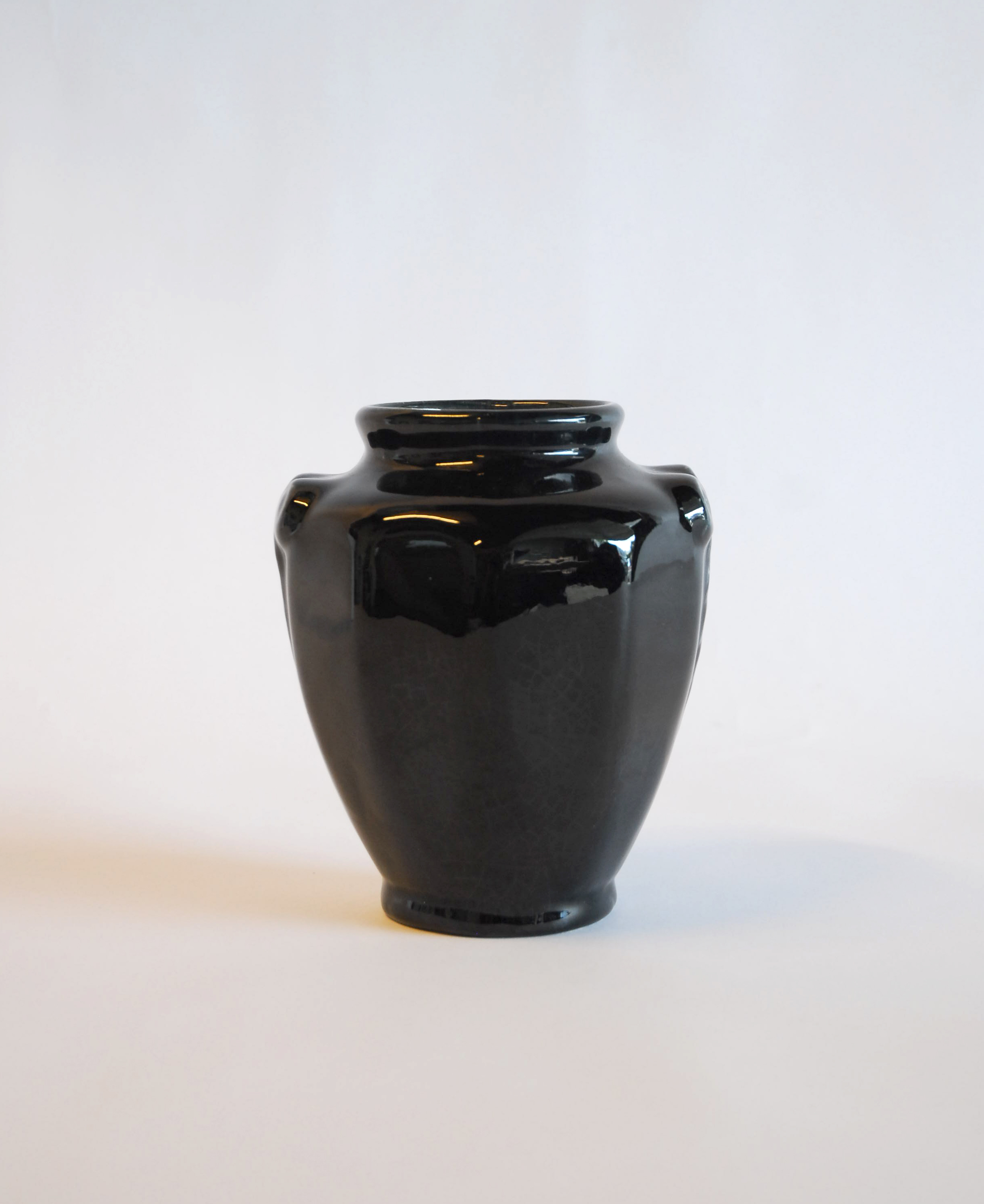Glossy Art Deco black faceted vase. Dimensions- 4.5"Dia x 5.5"H Exccellent Vintage Condition