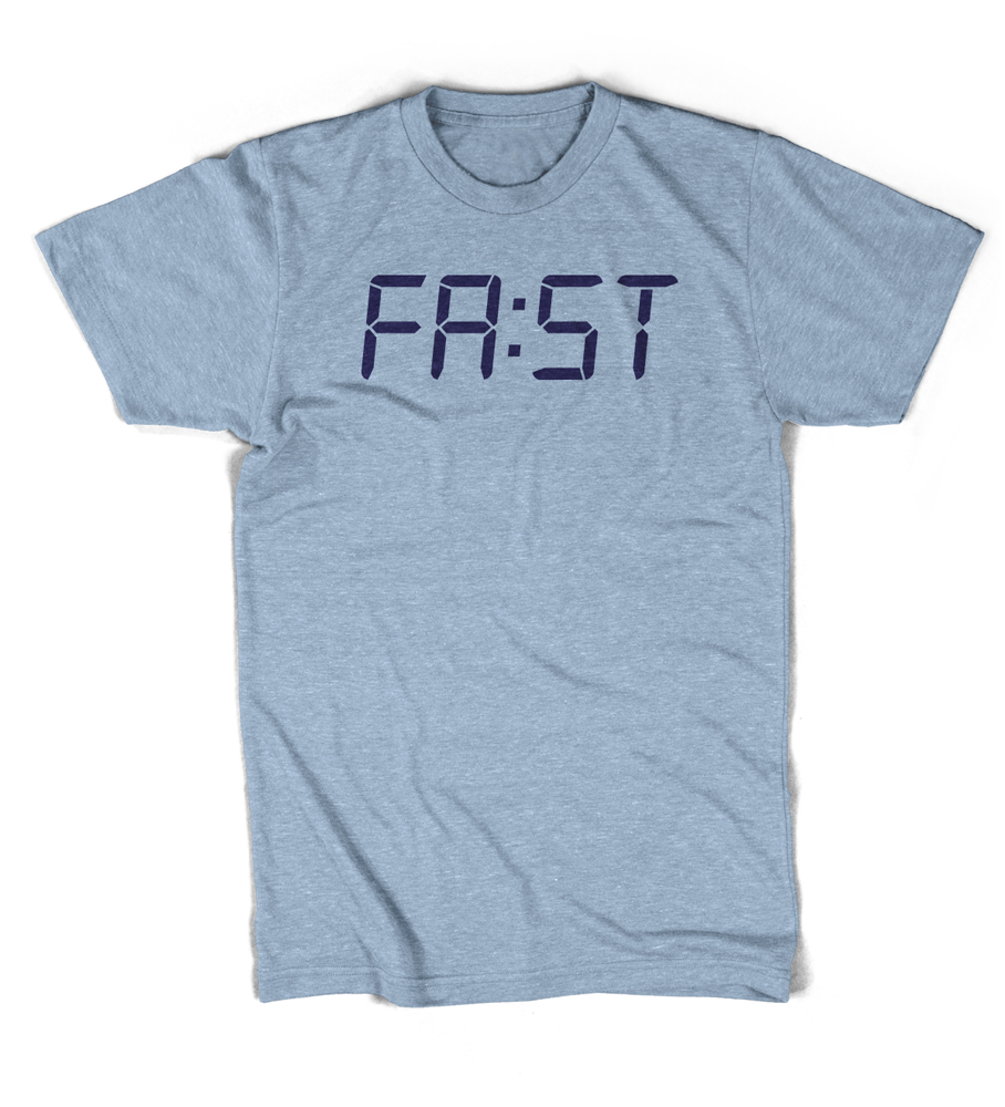 What time did you just run? A FAST one. Point, blank, period, no need for numbers. Screen printed on 65% polyester, 35% preshrunk cotton