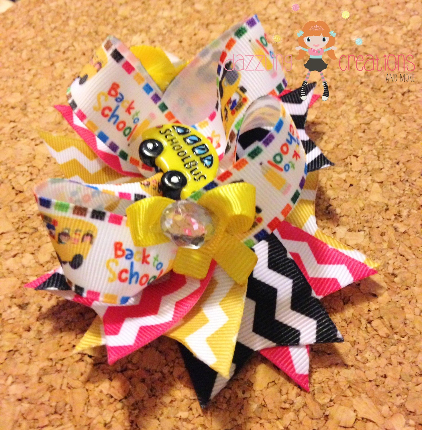 This listing is for one adorable 'School Bus Resin' Hair Bow shown.
