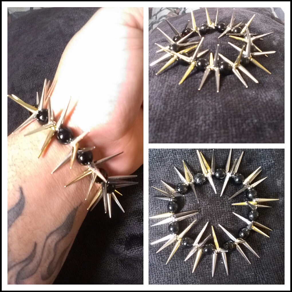 Multi Tone Short Spikes seperated by single black beads. Spikes are real, so no sudden moves (lol)