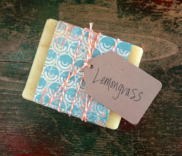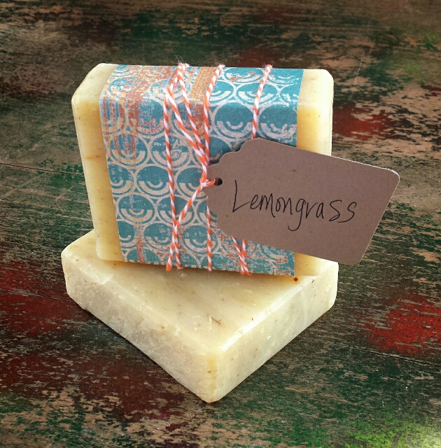 Lemongrass (vegan, all natural) This lemon rich scent is enjoyed by many for its unique citrus smell and is also known to relieve fatigue. The lemongrass also adds great exfoliation. Made with olive oil, distilled water, coconut oil, sodium hydroxide, organic palm oil, organic sunflower oil, shea butter, lemongrass essential oil, and lemongrass herb.