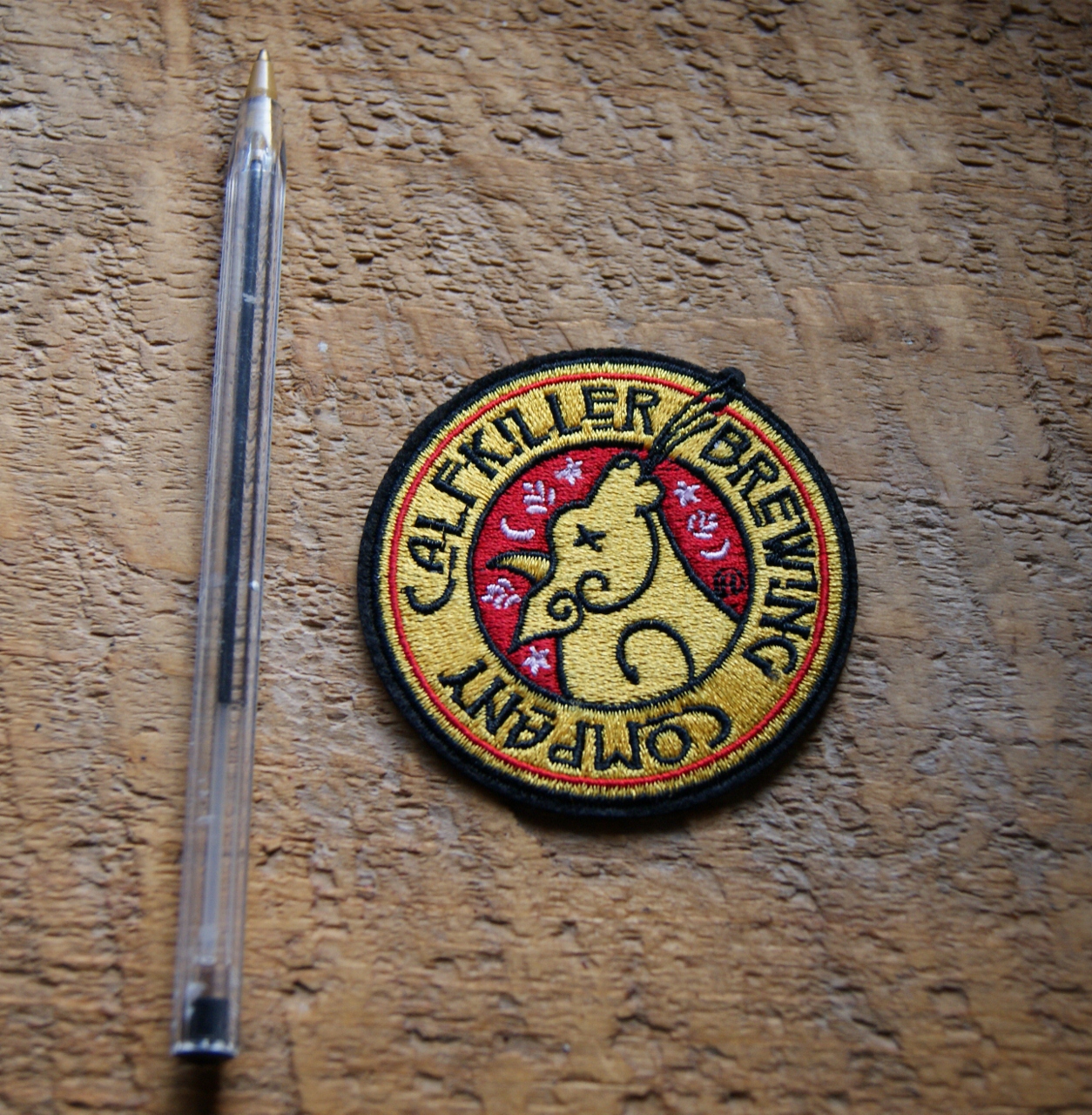 2 inch patch. Iron it or sew it on!! Give that drab garment a little Calfkiller love! Several will fit in an envelope. :)