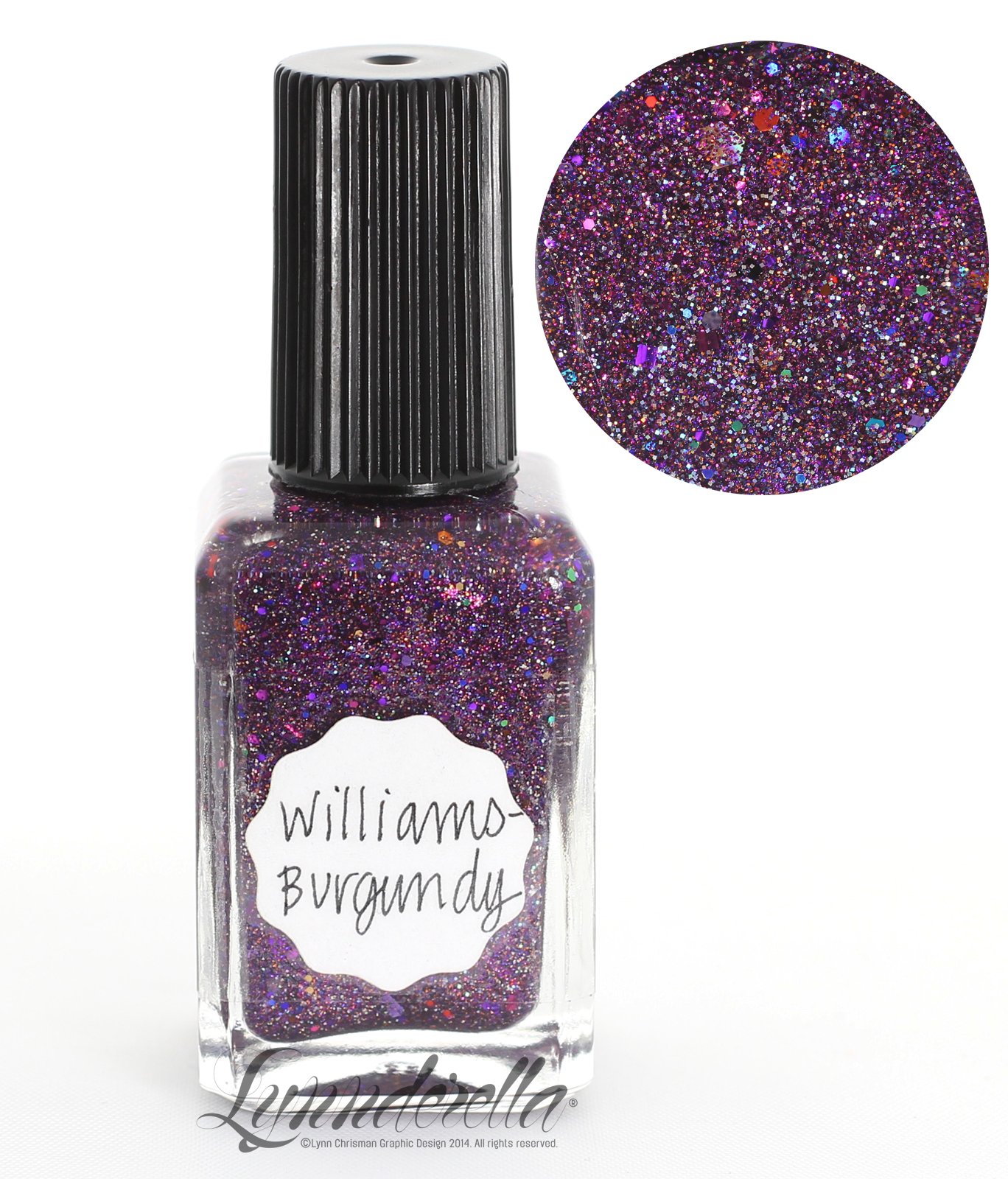 WilliamsBurgundy is a burgundy holographic microglitter with assorted metallic and holographic accents in a clear base.