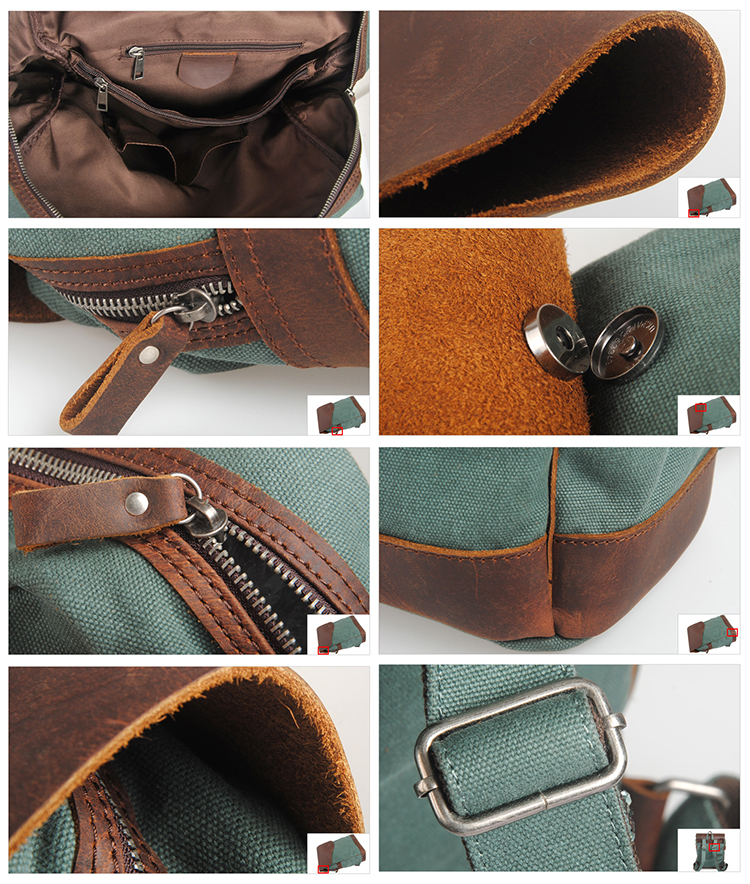 Karitco Retro Canvas Leather Messenger Bag Travel Backpack School Rucksack 2 Colors-4