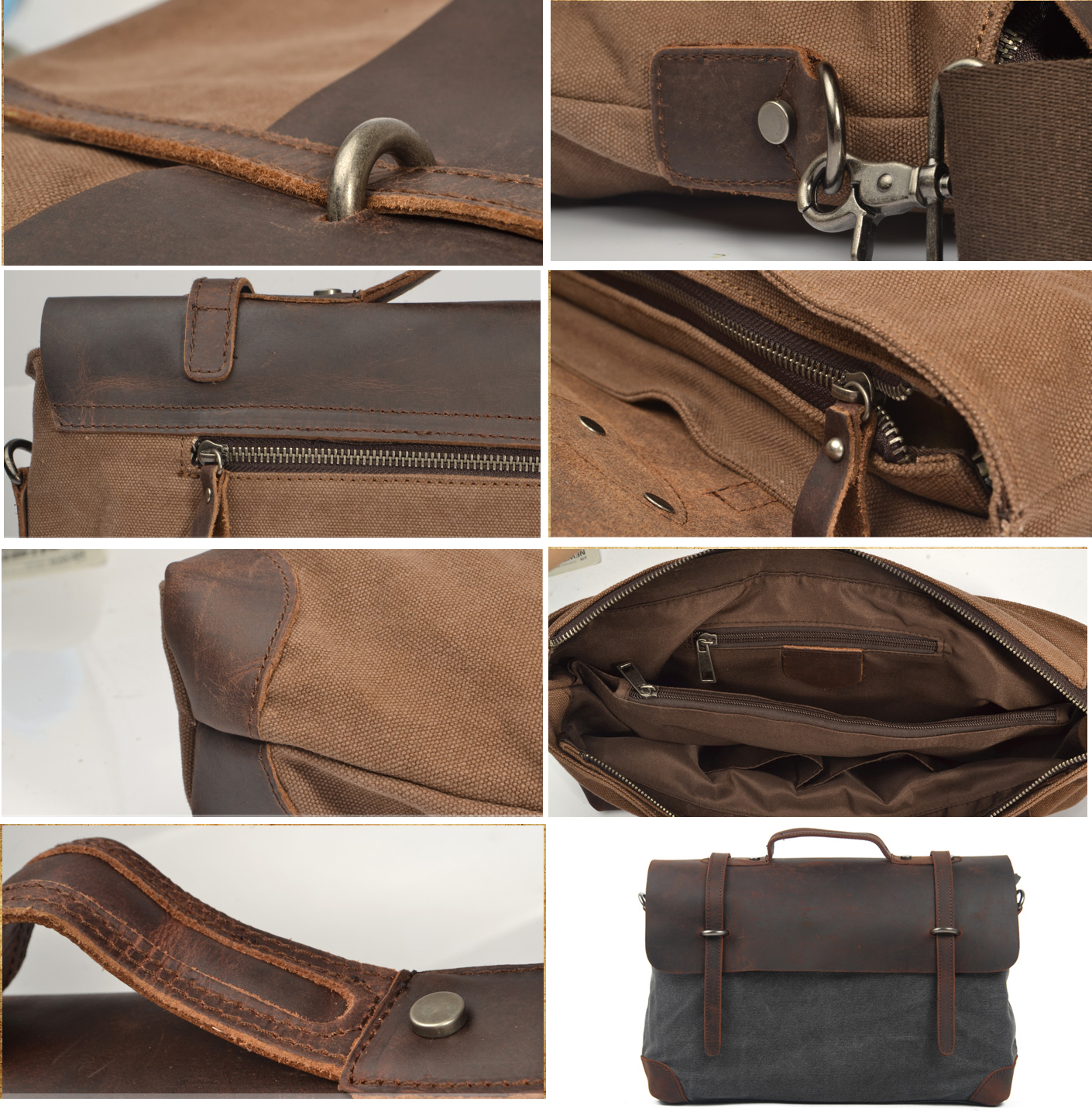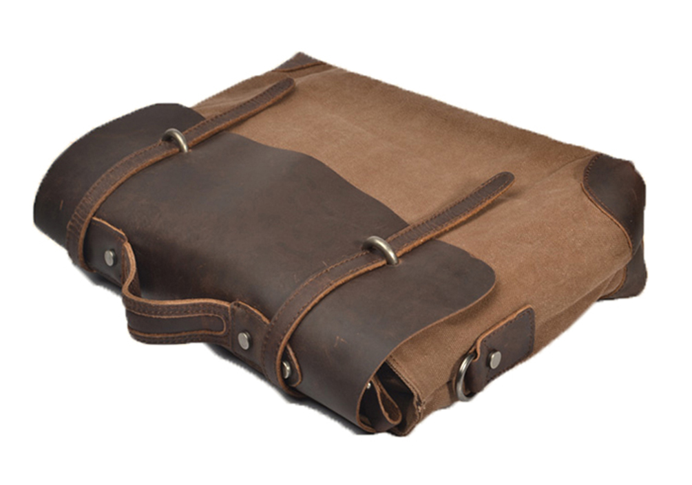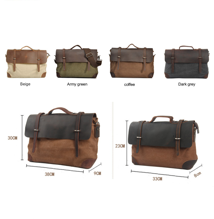 Karitco Unisex Top Handles Leather Canvas Handmade Vintage Messenger Bag 4 Colors 2 Sizes-4