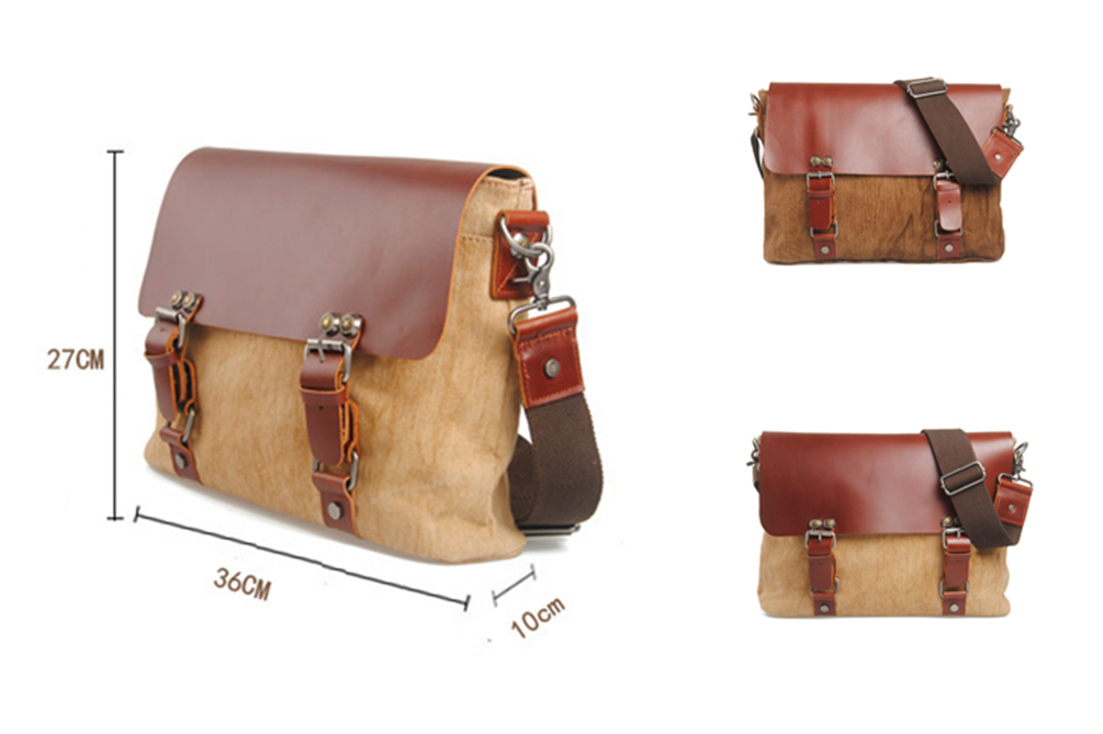 Karitco Canvas Leather Body Business Laptop Messenger Bag Shoulder Bag 2 Colors-4