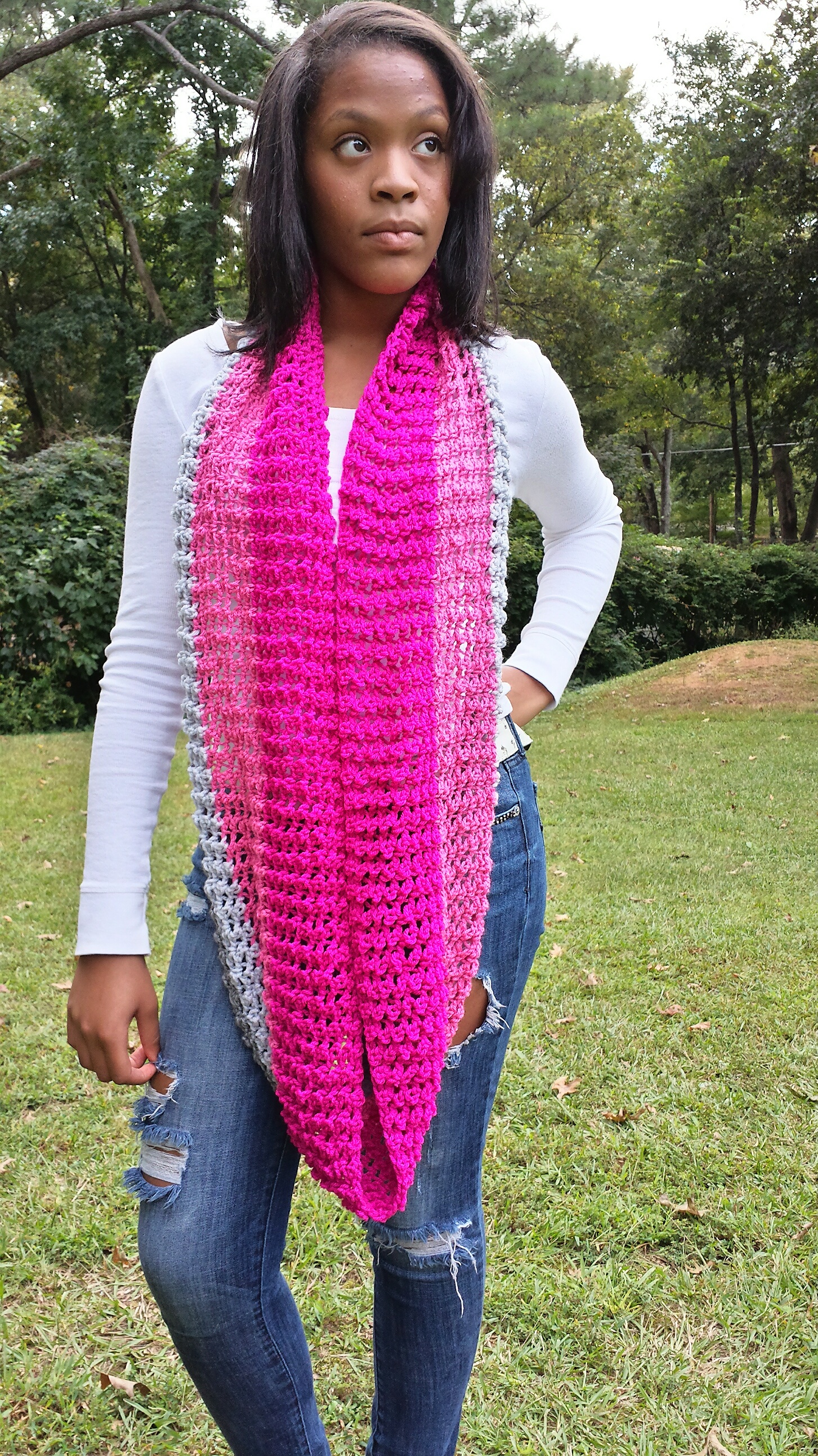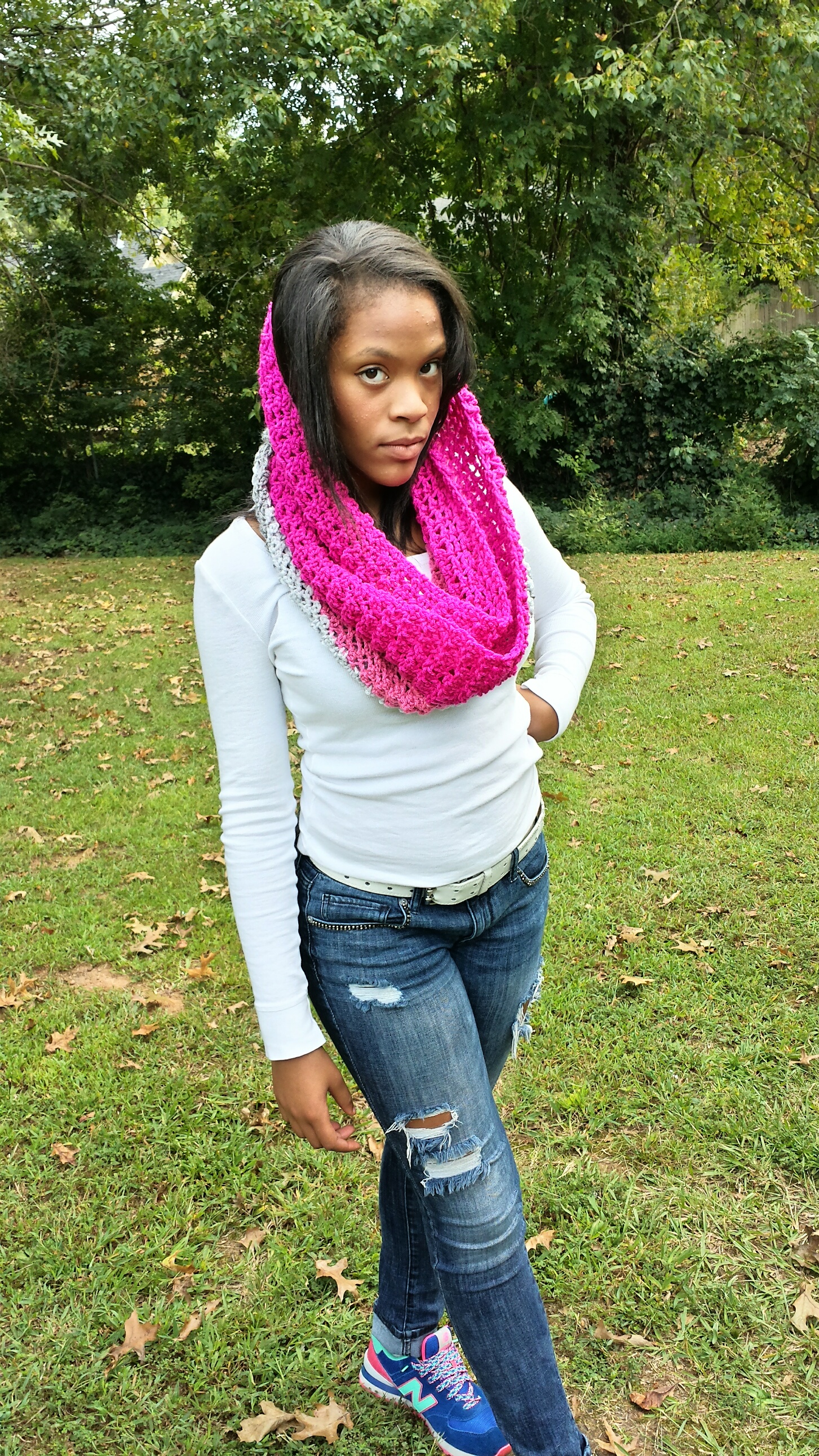 Stylish, plush uber long infinity scarf made of 100% acrylic yarn. Scarf can be worn long or wrapped two or three times for desired look. Colors can be customized to preference. Choose "custom" so infinity multi and note colors desired in notes.