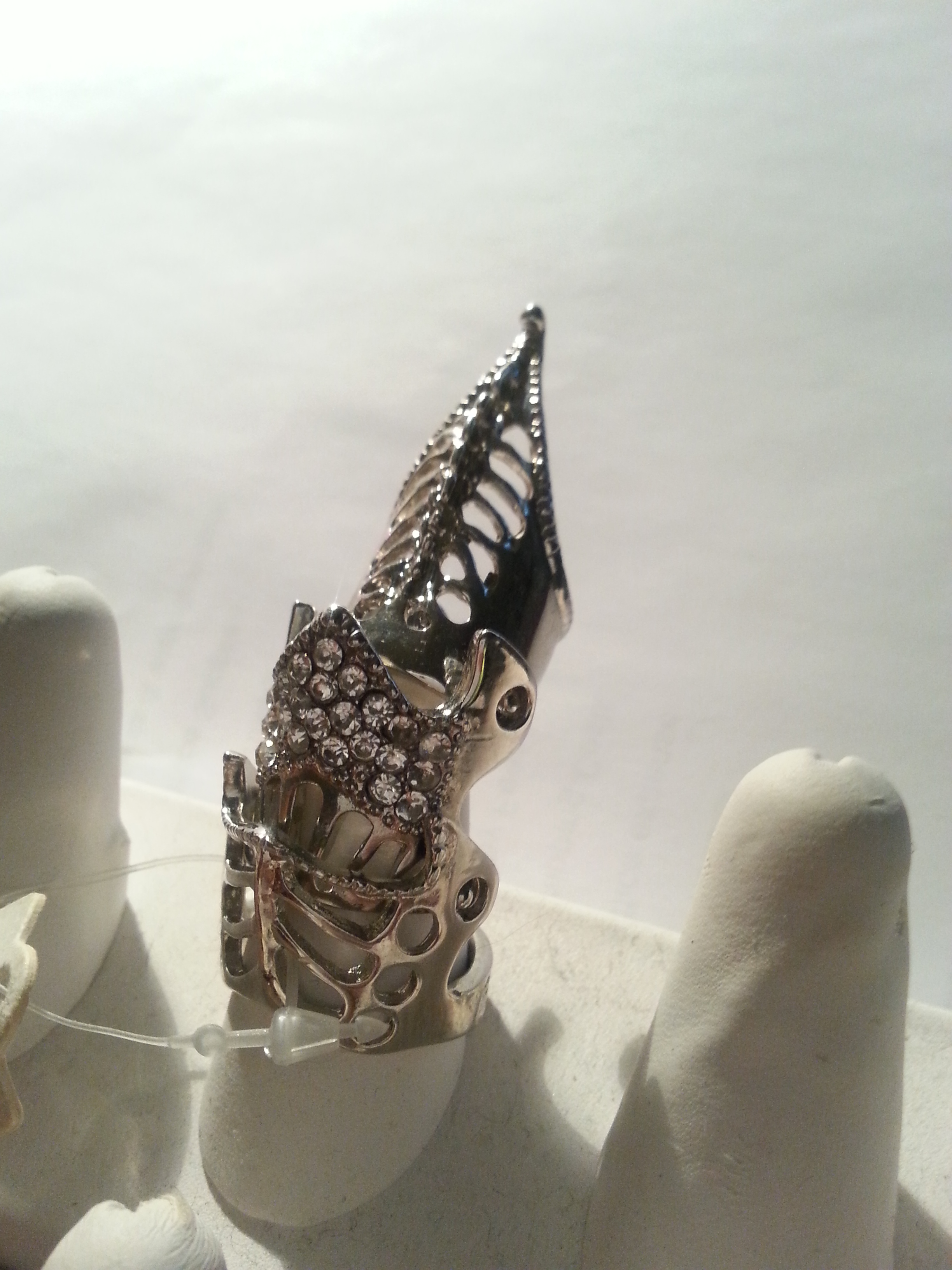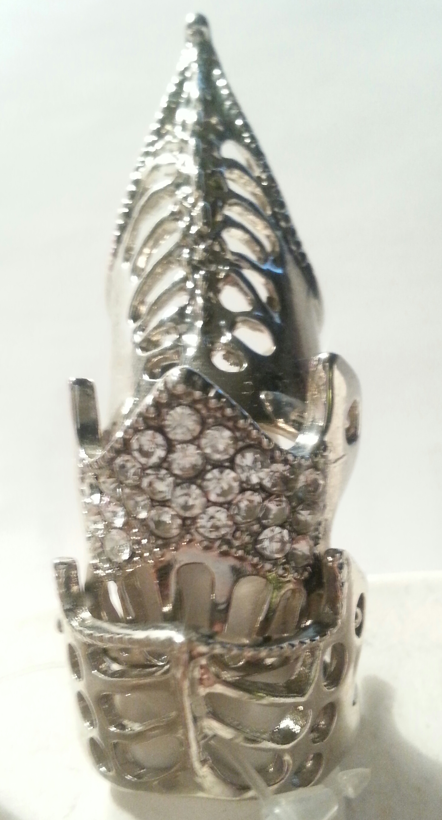 Armor Ring, Crystal, Bold, Statement, Metal, Material Rhodium Size 2.5 inches tall