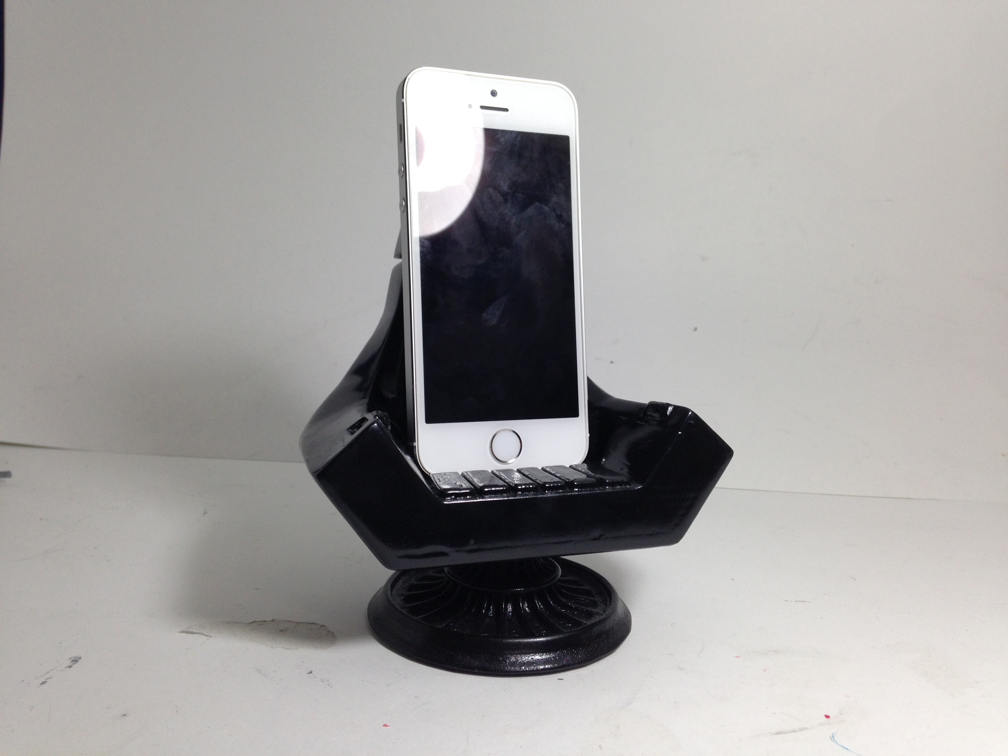 This is one of a kind prototype phone charger.. the charging cable goes into the bottom of the throne and charges your iphone or android phones This has been tested with iphone 4, iphone 5 it should fit the iphone 6 I repeat this is one of a kind prototype made here in the US