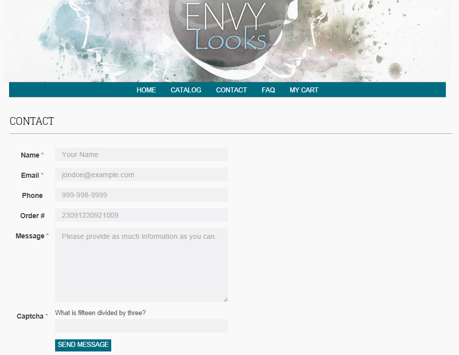 - color navbar with all your custom pages plus Home, FAQ, About Us and Contact links.
