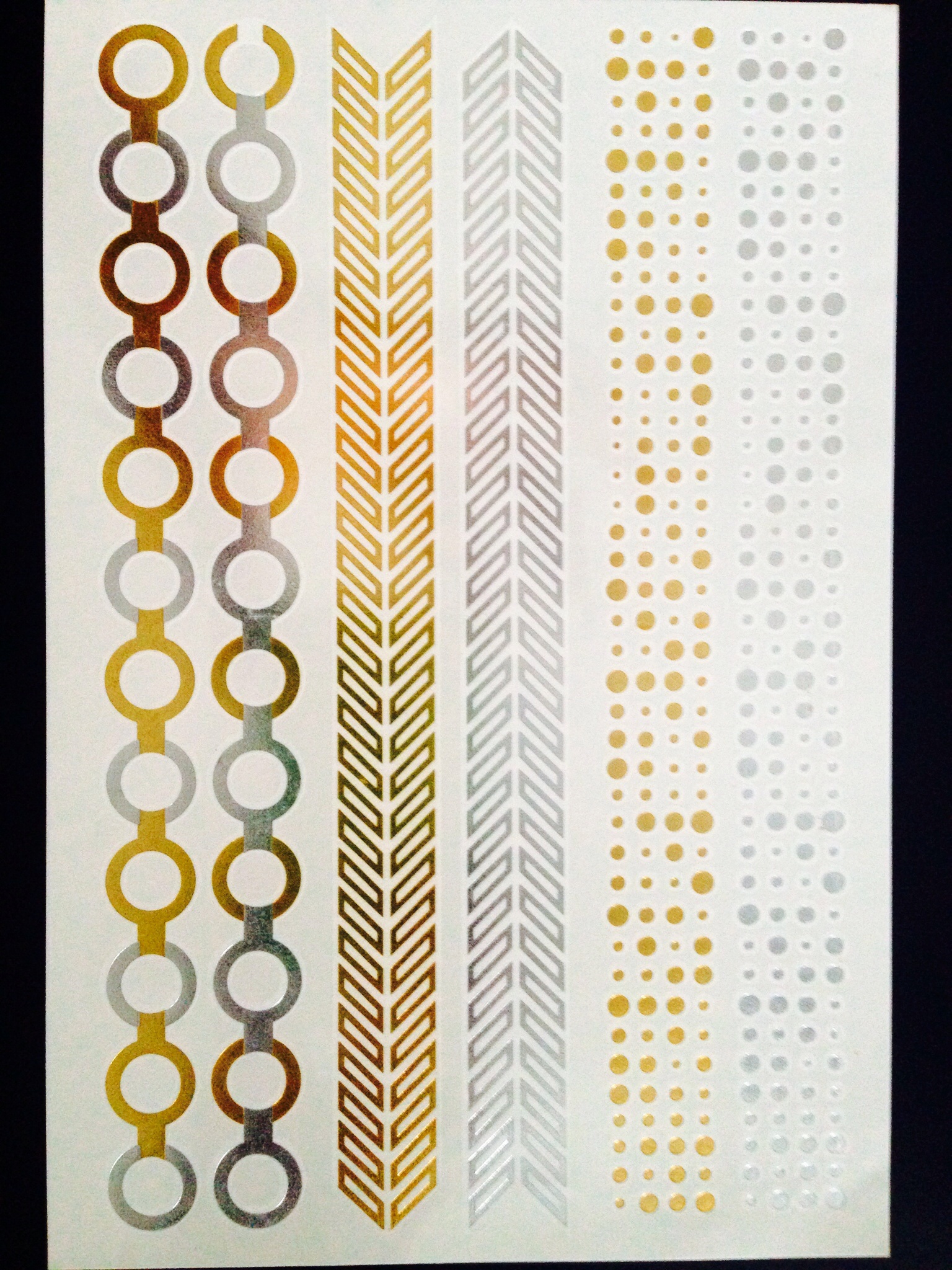 Silver and Gold Bracelet/Anklet Combinations. Modern design to create your own look. Just apply, glimmer and go! 4-6 days depending on where they are placed and how well you take care of them. Avoid any soap, sunscreen, lotions or oils near or on your tattoo. These types of oil based substances will begin to degrade the adhesive and dull your flash.
